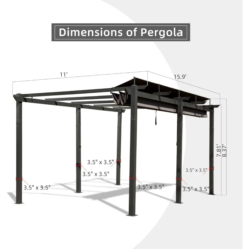 11’ X 16’ Outdoor Retractable Pergola with Weather-Resistant Canopy Aluminum Garden Pergola Patio Grill Gazebo for Courtyard