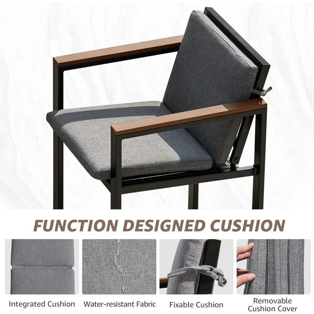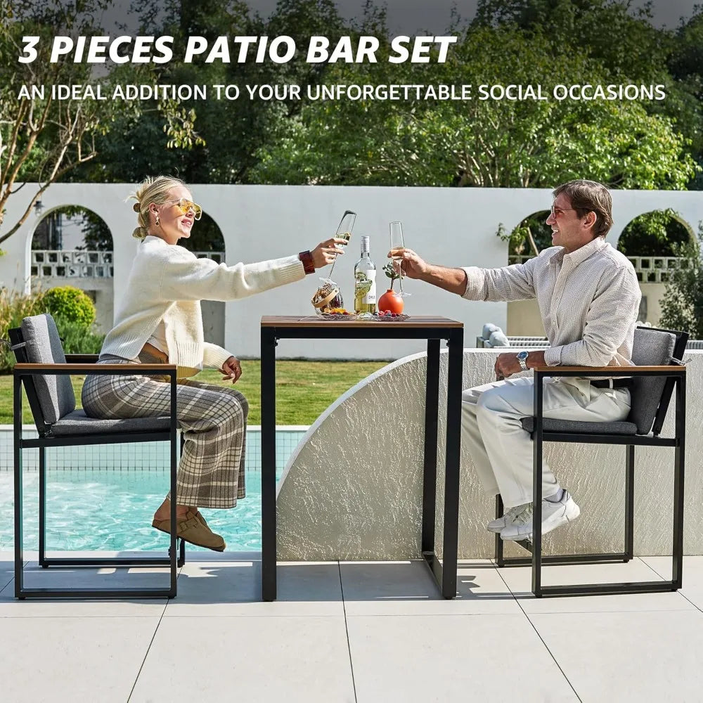 3-Piece Bar Table and Chairs Set, Outdoor Bar Set with Fauxwood Armrest, Water-Resistant and Removable Cushion