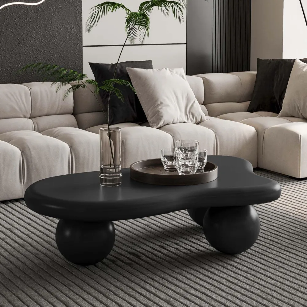 40" Black Modern Coffee Table Cloud Shape Low Center Table with 3 Ball Legs Cute Irregular Indoor Tea Table for Living Room