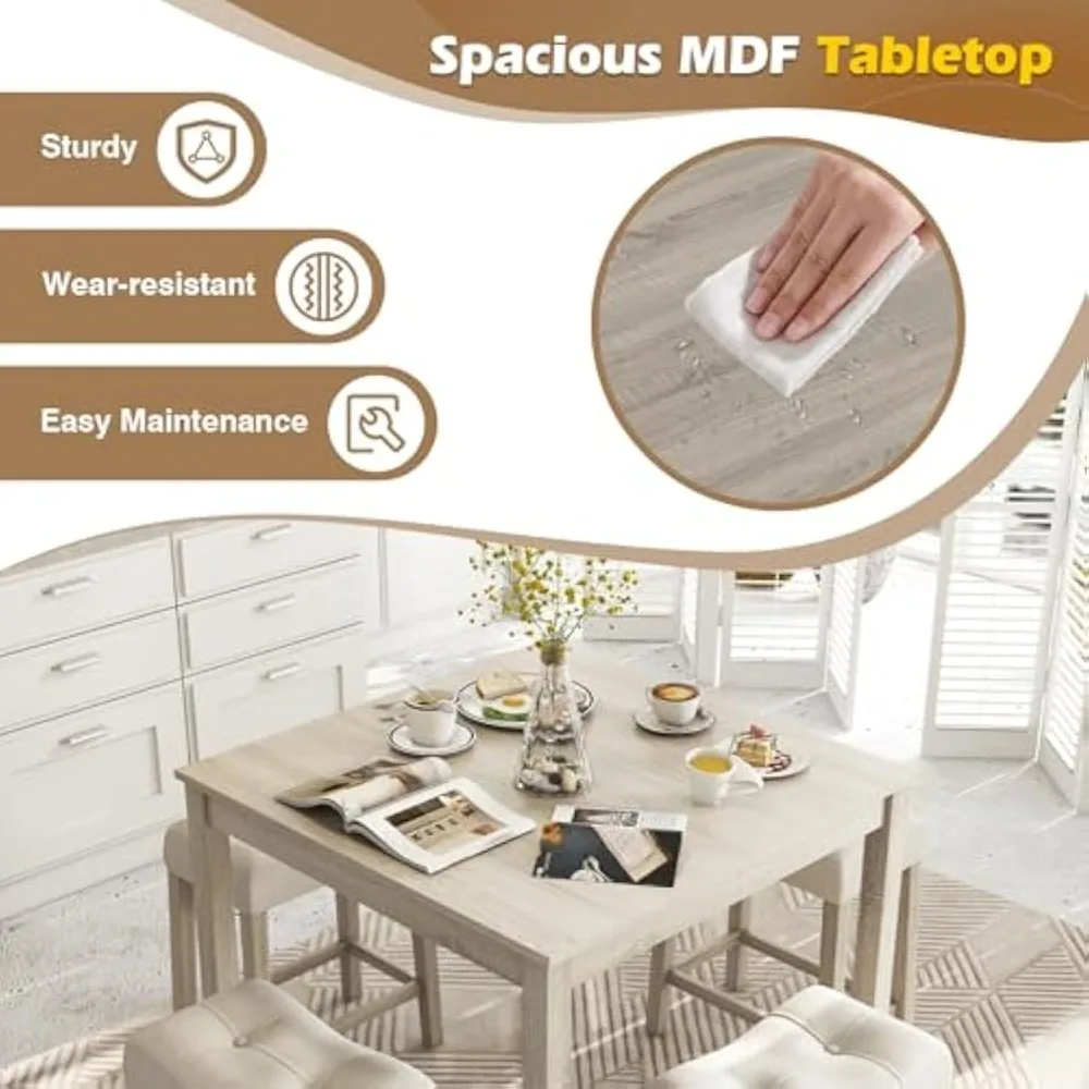 - [Spacious & Waterproof Tabletop]: Enjoy a generous 35”x 35" MDF tabletop veneered with waterproof wood grain stickers on this square dining table, providing ample space for meals and tableware while ensuring durability for better use.