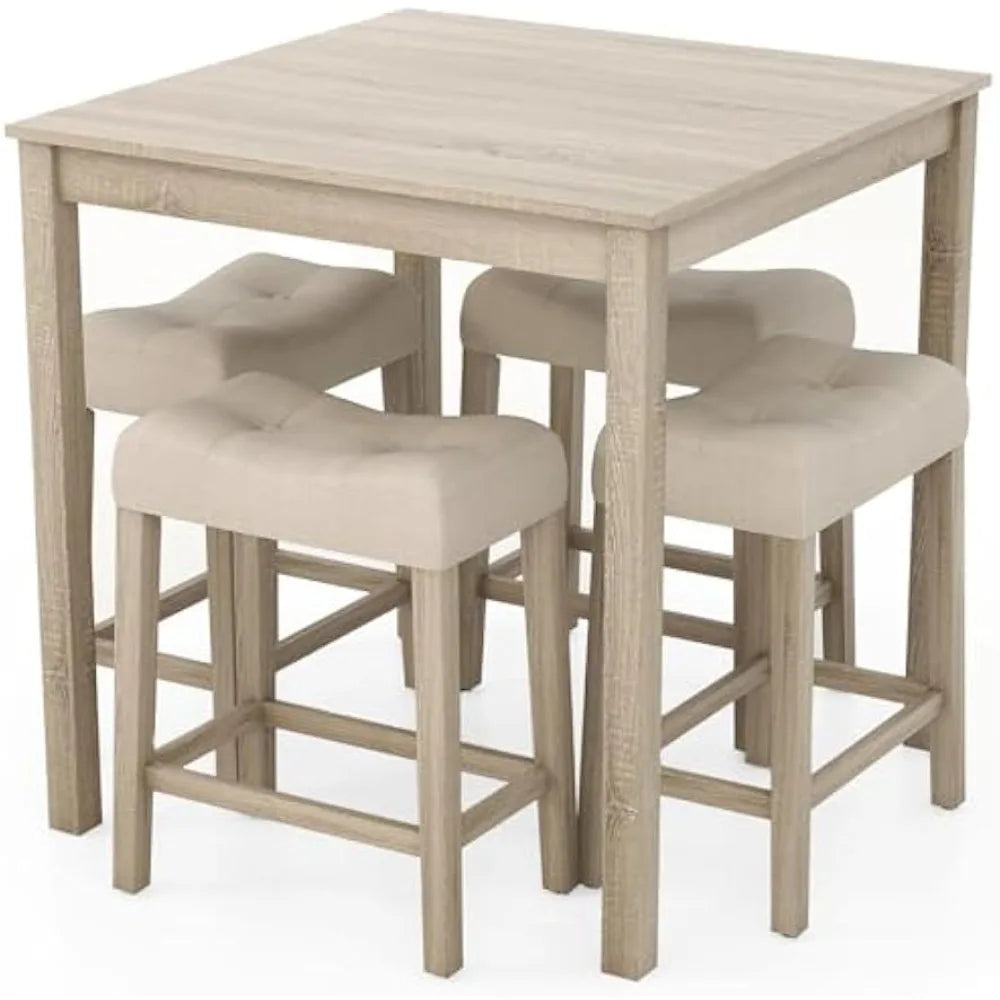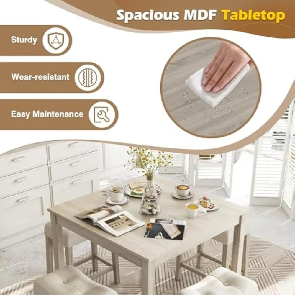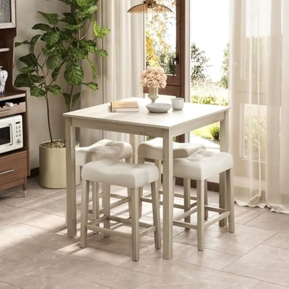 - [Space-saving Design]: This elegant dining set comes with a sturdy dining table and 4 upholstered stools. The 4 stools can be stored under the table when not in use, which is perfect for homes with limited space or for those who appreciate a tidy and minimalist aesthetic.