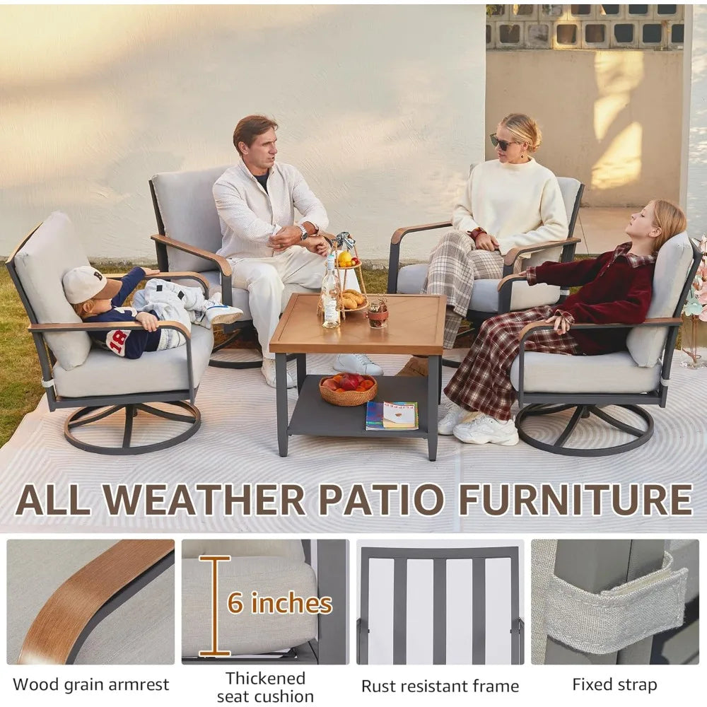 5 Piece Patio Furniture Set, Outdoor Conversation Set with 4 Pcs Swivel Rocking Chairs and 27" Double-layer Coffee Table