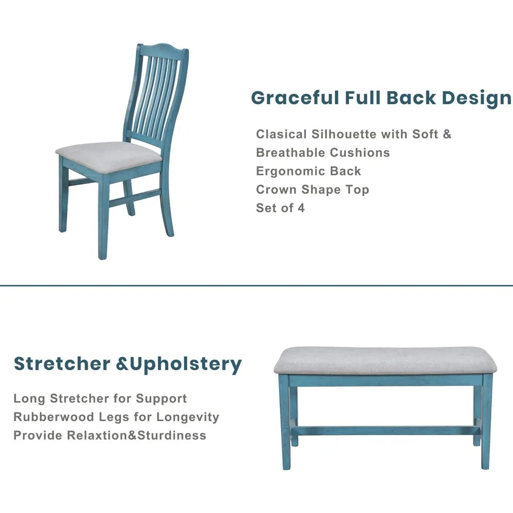 - [Durable&Soft Kitchen Table Set] The tableware has both durability and softness. Rubber wood legs will remain stable while breathable pads on all chairs and benches provide a soft and comfortable feel.