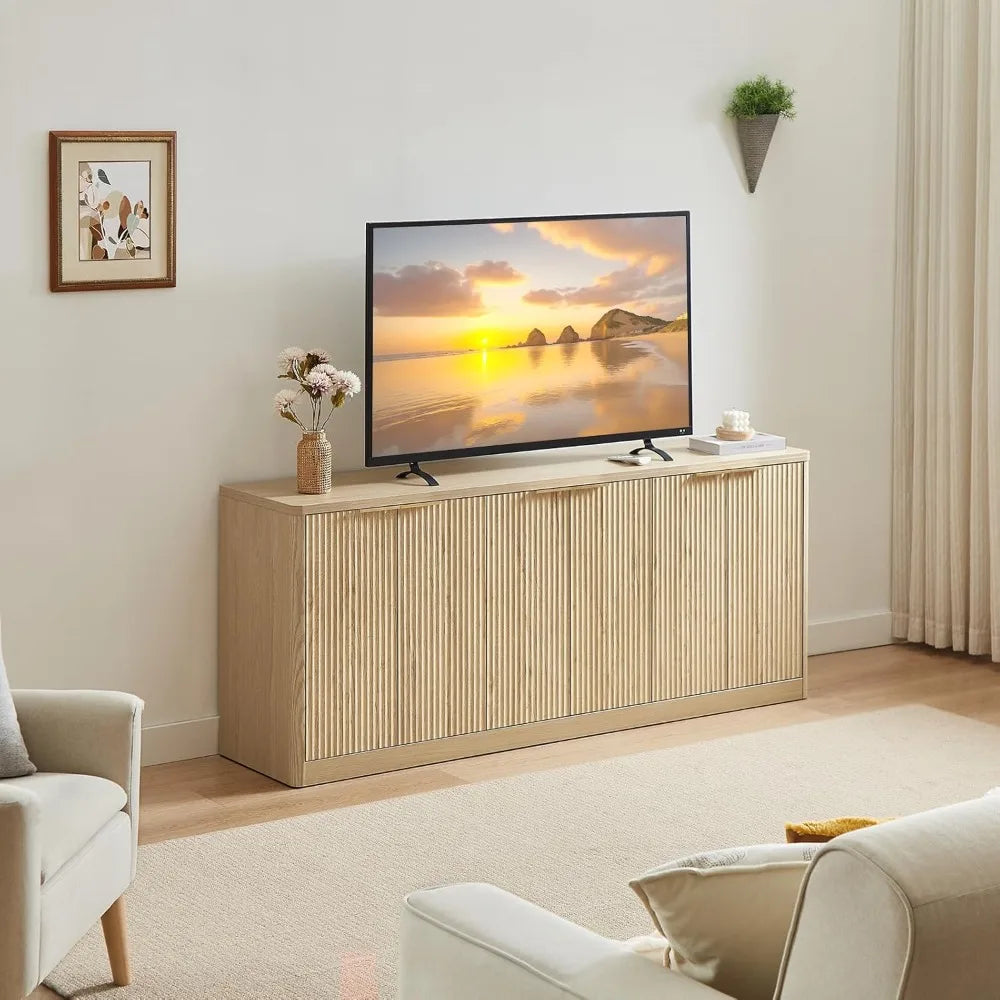 67" Fluted Oak Sideboard Buffet Cabinet with Storage, Large Buffet Cabinet with 6 Doors, Wood Mid Century Modern Sideboard