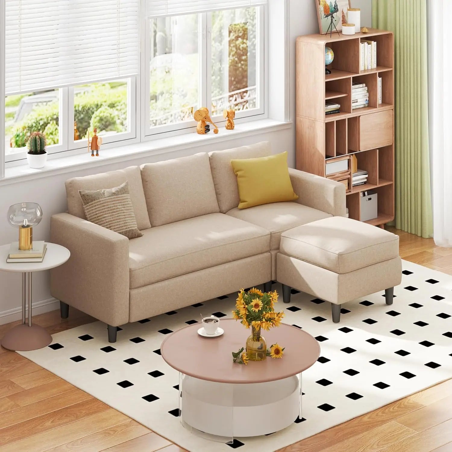 - 【Saving Space】Three seater sofas are suitable for small spaces, compact and convenient. With movable cushions and footstools, you can adjust your sitting posture to suit you best.
