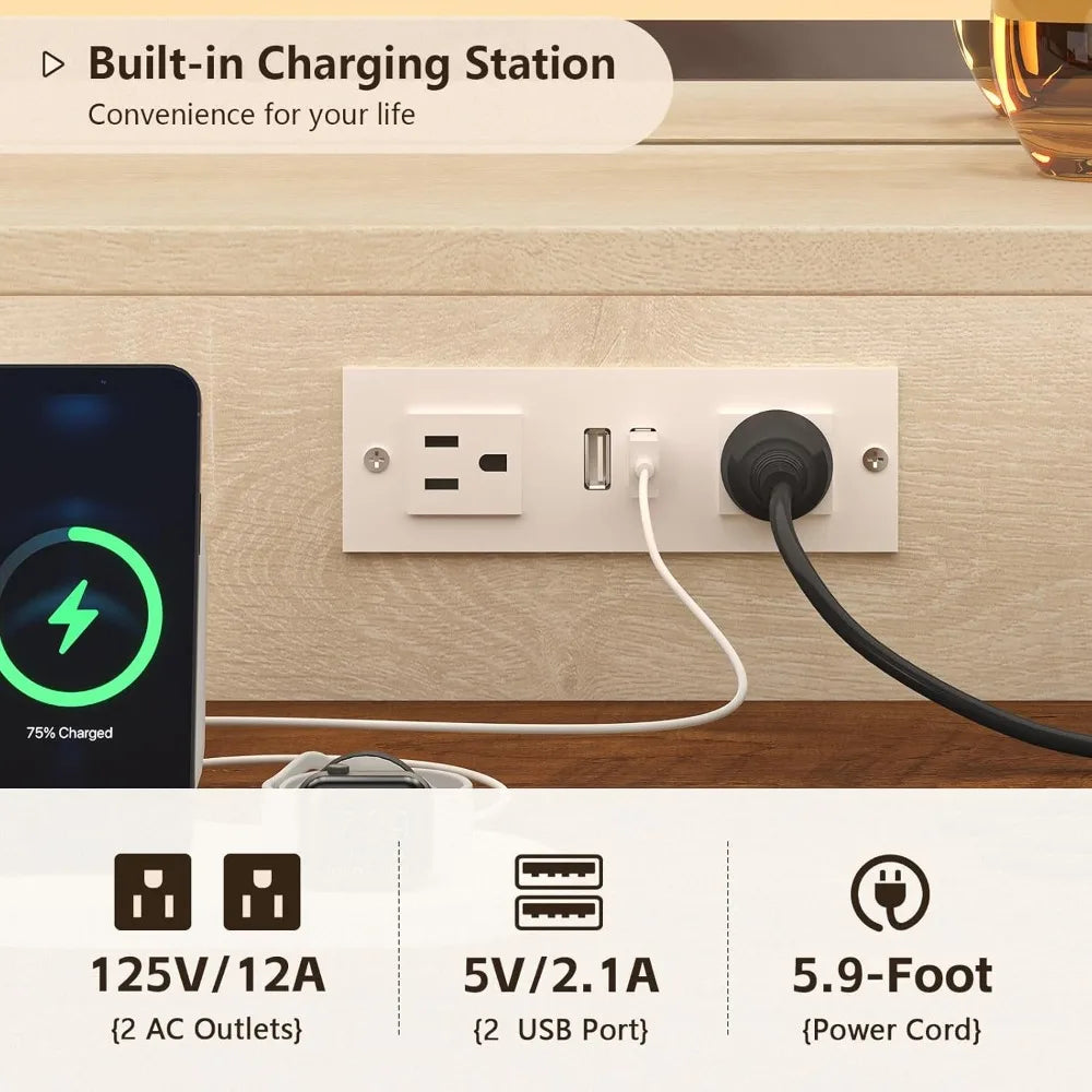 • 【Built-in Charging Station】 This vanity desk adds 2 standard plug sockets, 2 USB ports and 5.9 feet power cord that can be easily connected to the power supply. Make it convenient for you to use hair dryers, curling irons or beauty devices, and it can also charge your phone, tablet or other mobile devices.