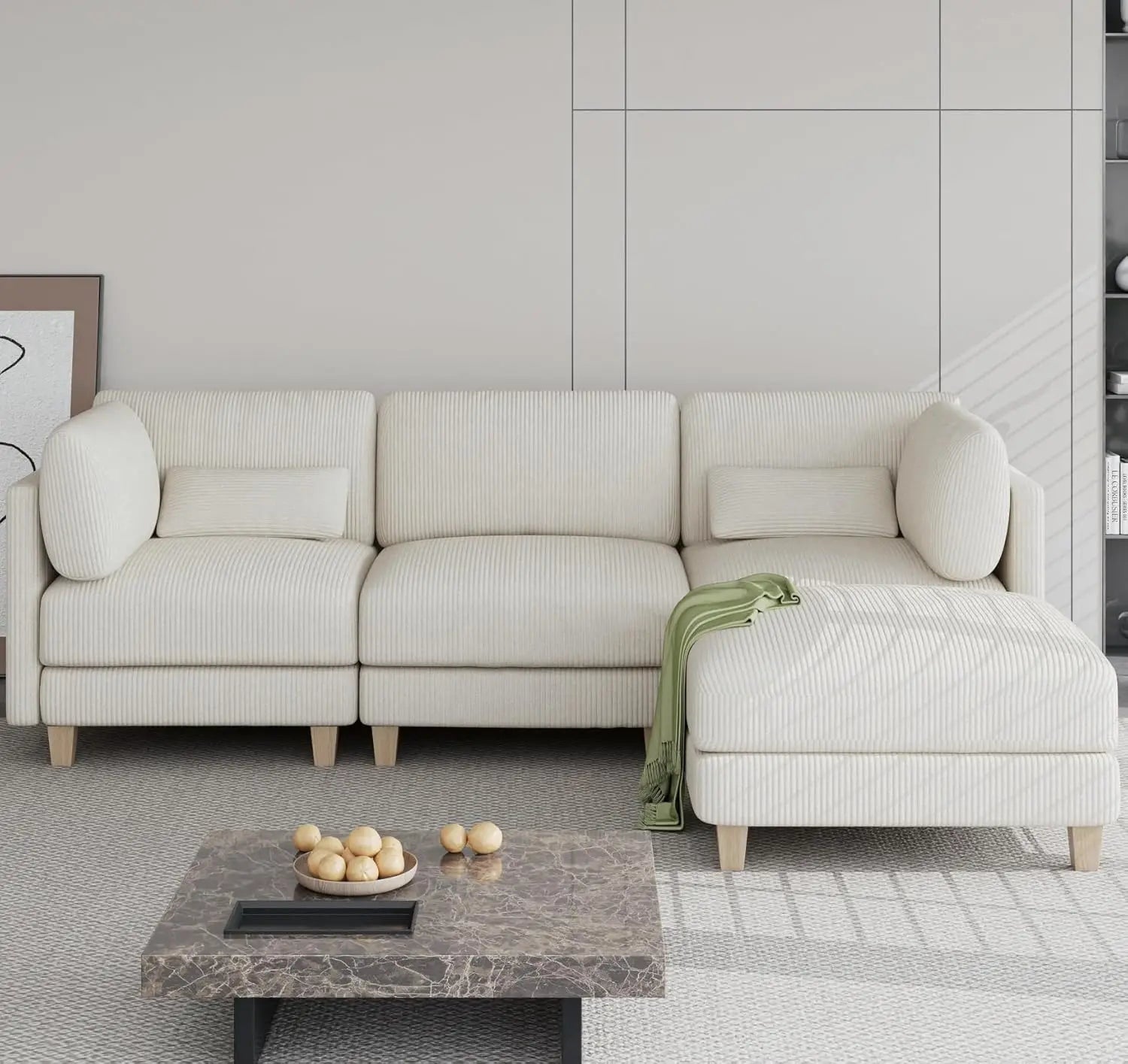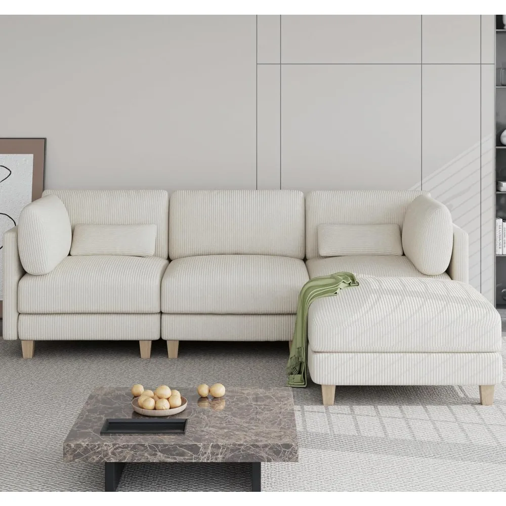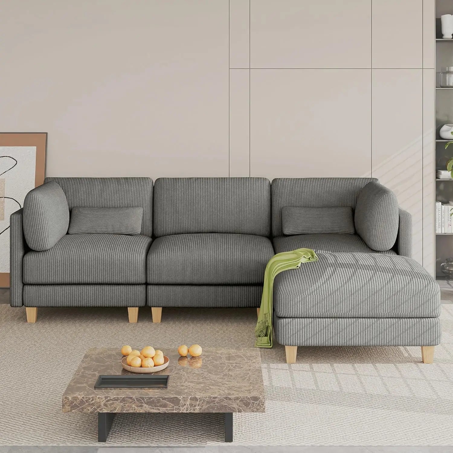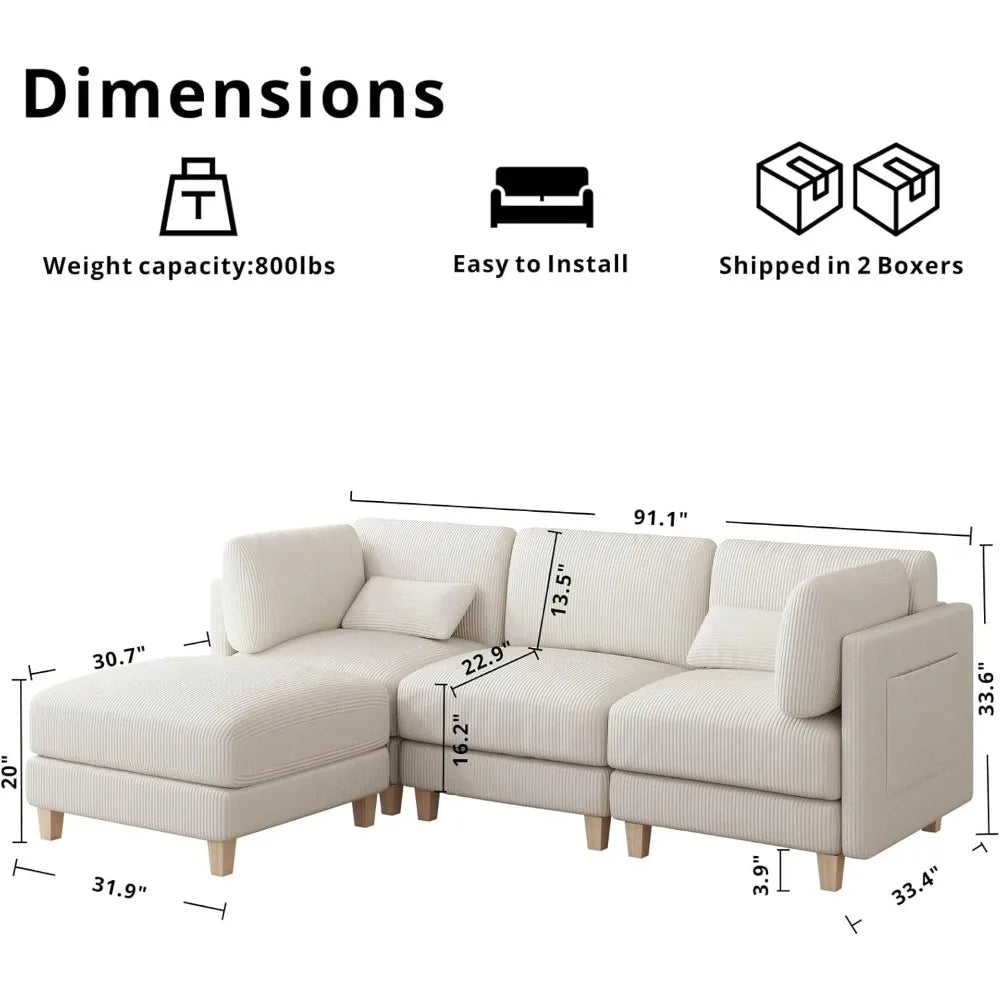 91.1" Modern L-Shaped Sectional Sofa for Living Room, 3-Seater Comfy Couch with Deep Seat and Movable Ottoman