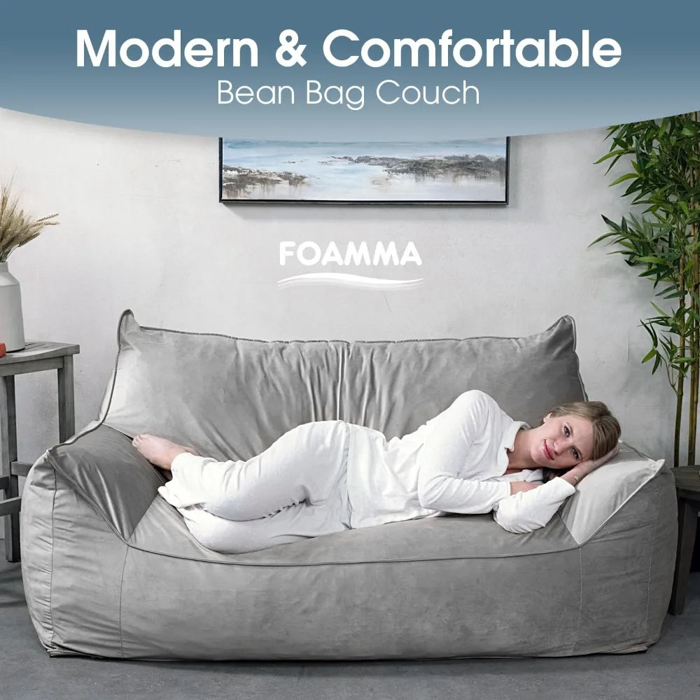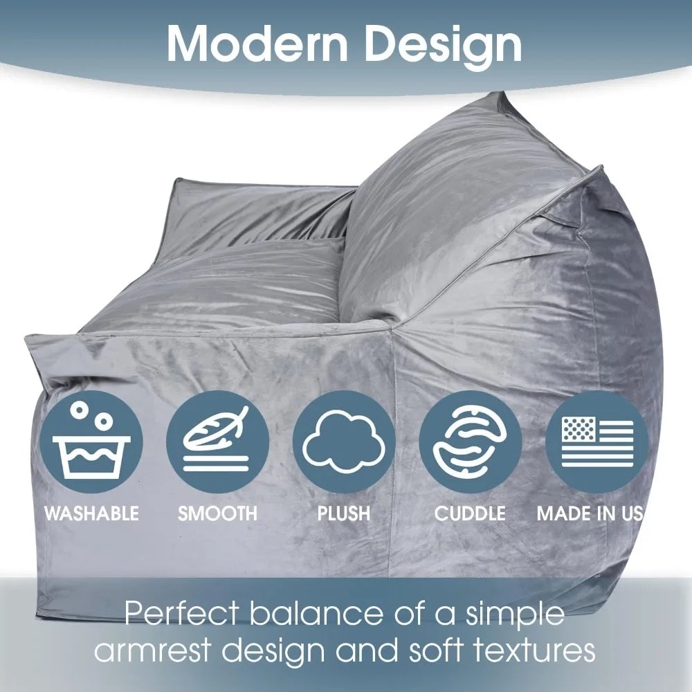 Bean Bag Sofa Chair, Gray - Bean Bag Chair with Armrests, Bean Bag Couch with High-Density Foam, Reading Chair, Lounge Chair