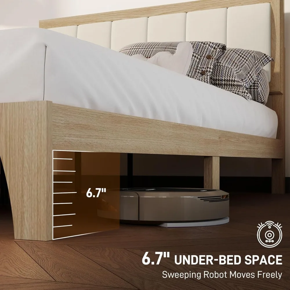• Stylish Comfort & Mid-Century Charm: Designed with an upholstered headboard, the full bed frame offers comfort for lounging or reading. The blend of linen-feel fabric and wood grain frame brings a mid-century modern esthetic, enhancing bedroom decor