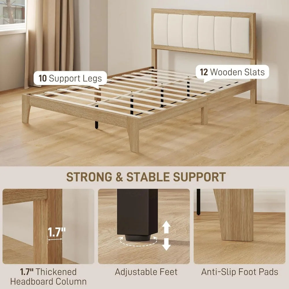 Bed Frame with Upholstered Headboard, Platform Bed Frame with Wooden Slats, No Box Spring Needed, Easy Assembly