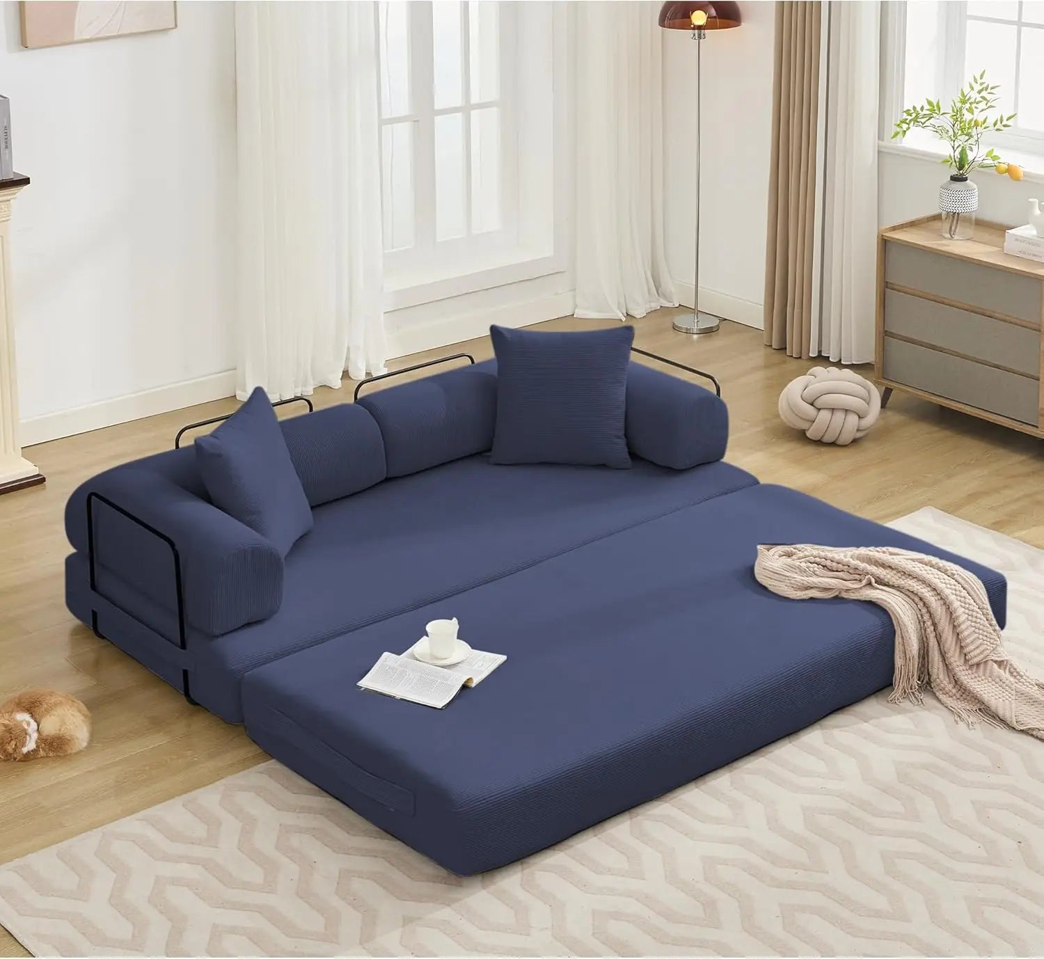 • Premium Comfort: Upholstered in soft, breathable Small Streak Corduroy fabric, this convertible sofa bed features high-density foam that effectively alleviates pressure while providing robust support. The accompanying plush pillows enhance your lounging experience, ensuring relaxation like never before.