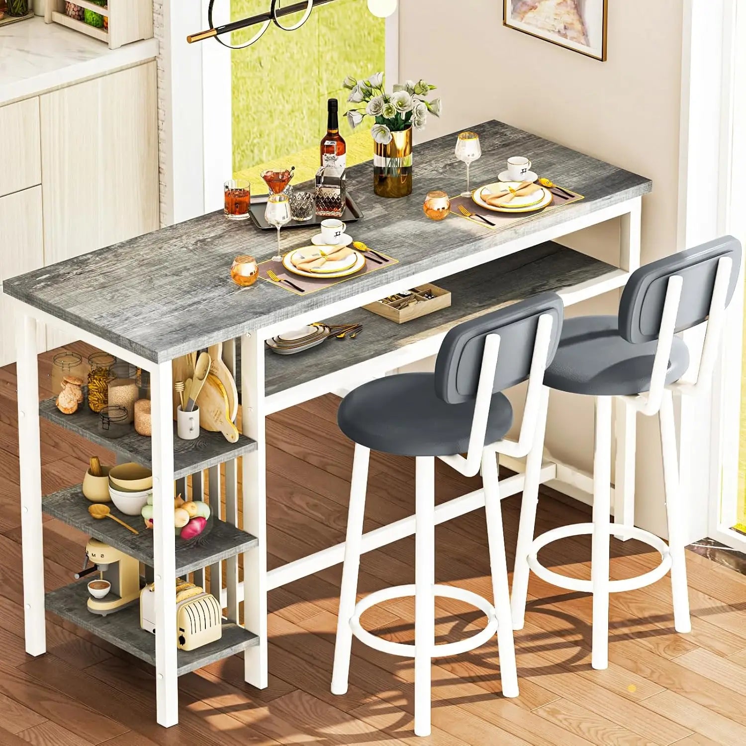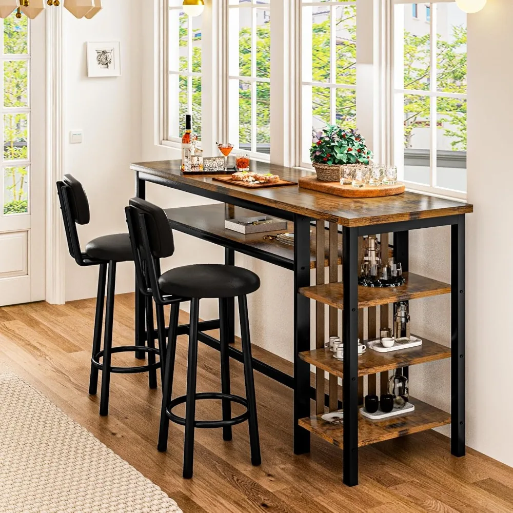 • 【Dining Table for 2 Design】: Bar table set for 2 has good storage and space-saving capabilities. This is all thanks to the bar table set with five storage layers and bar stools that can be pushed under the bar table.