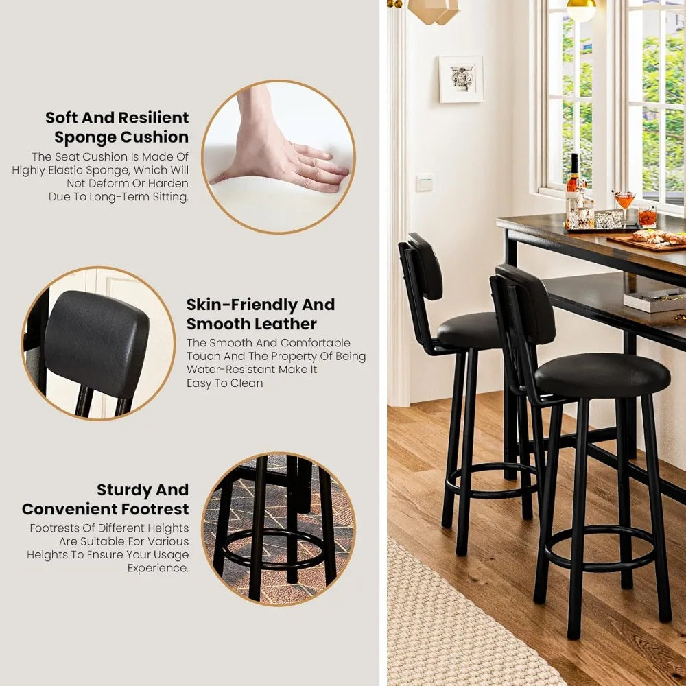 • 【Height Quality 3 Piece Pub Table Set】: Dining table set for 2 is strong and durable. Use metal as the frame, with faux wood panels to make the bar table light, and faux leather and sponge to make the stools comfortable.