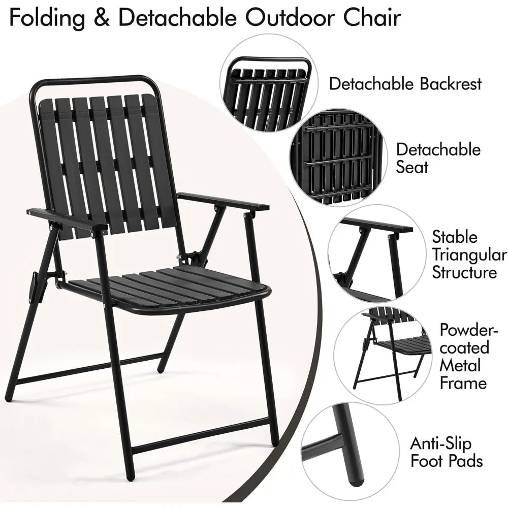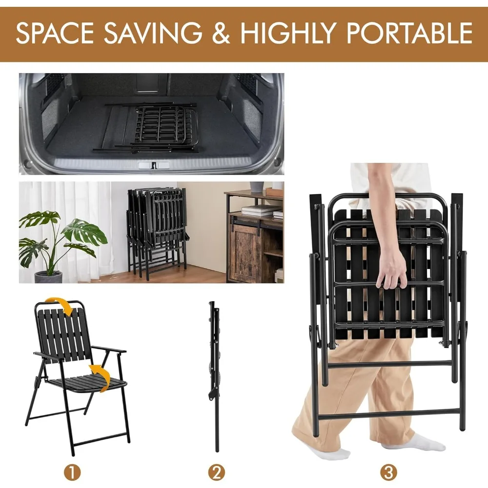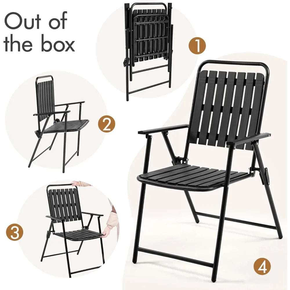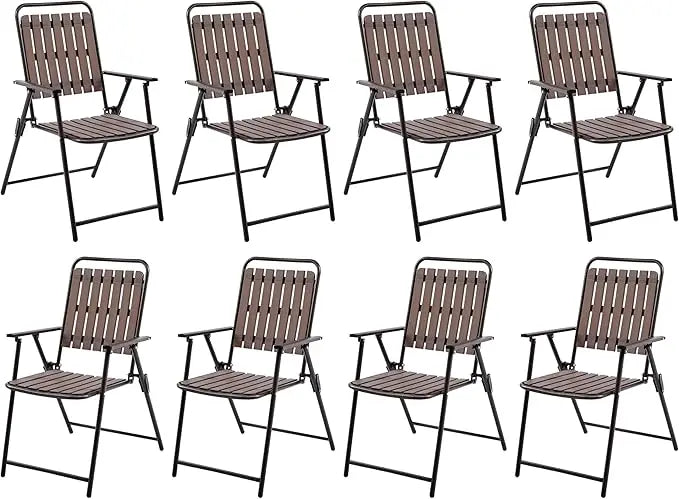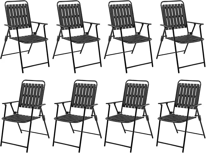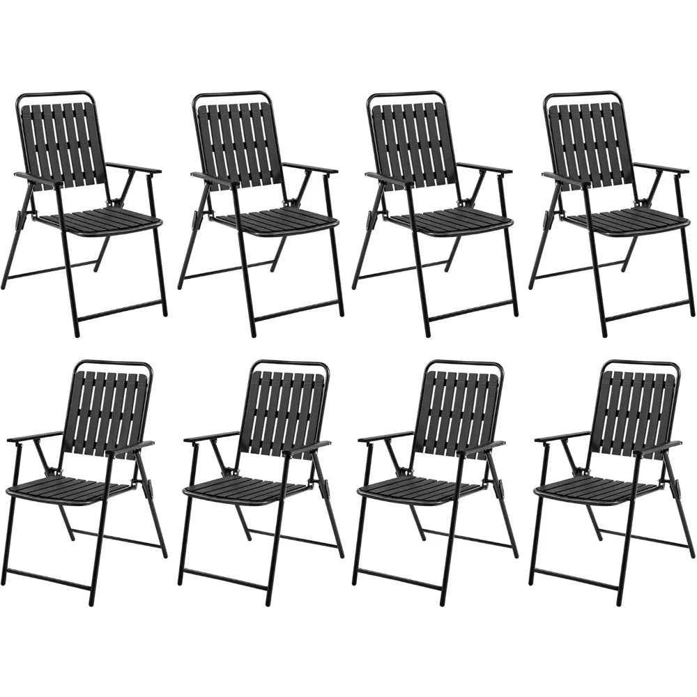 Folding Patio Chair Set of 8, Outdoor Dining Chair with Armrests, Plastic Patio Chair for Porch, Deck, Garden, Backyard