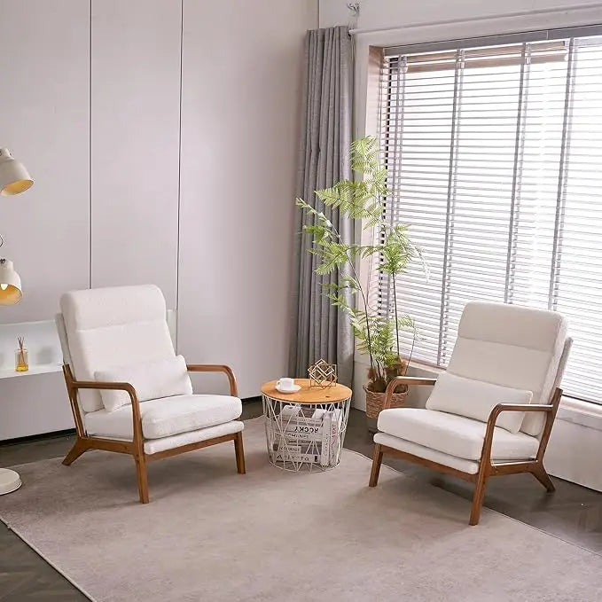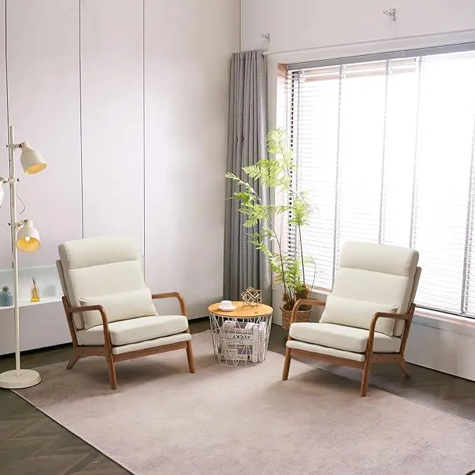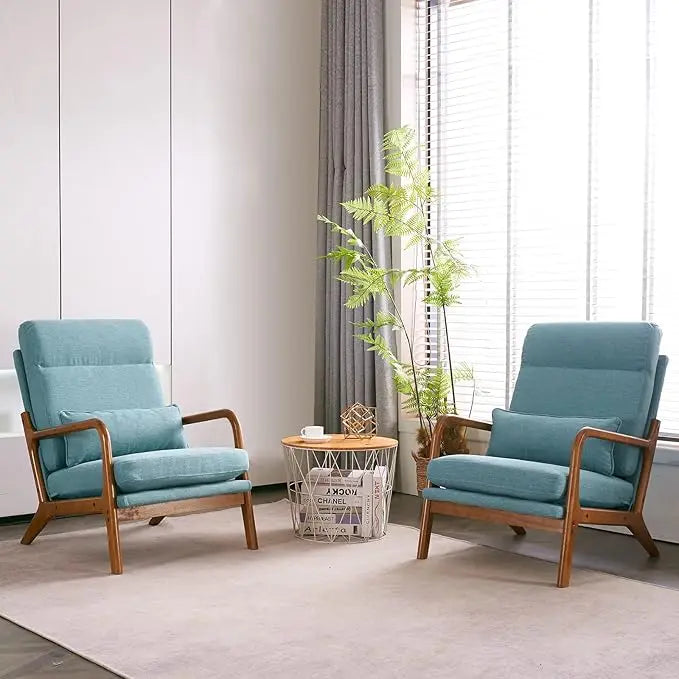 High Back Microfiber Rustic Accent Chairs Set of 2, Upholstered Mid Century Modern Lounge Chairs Reading Chairs Side Sitting