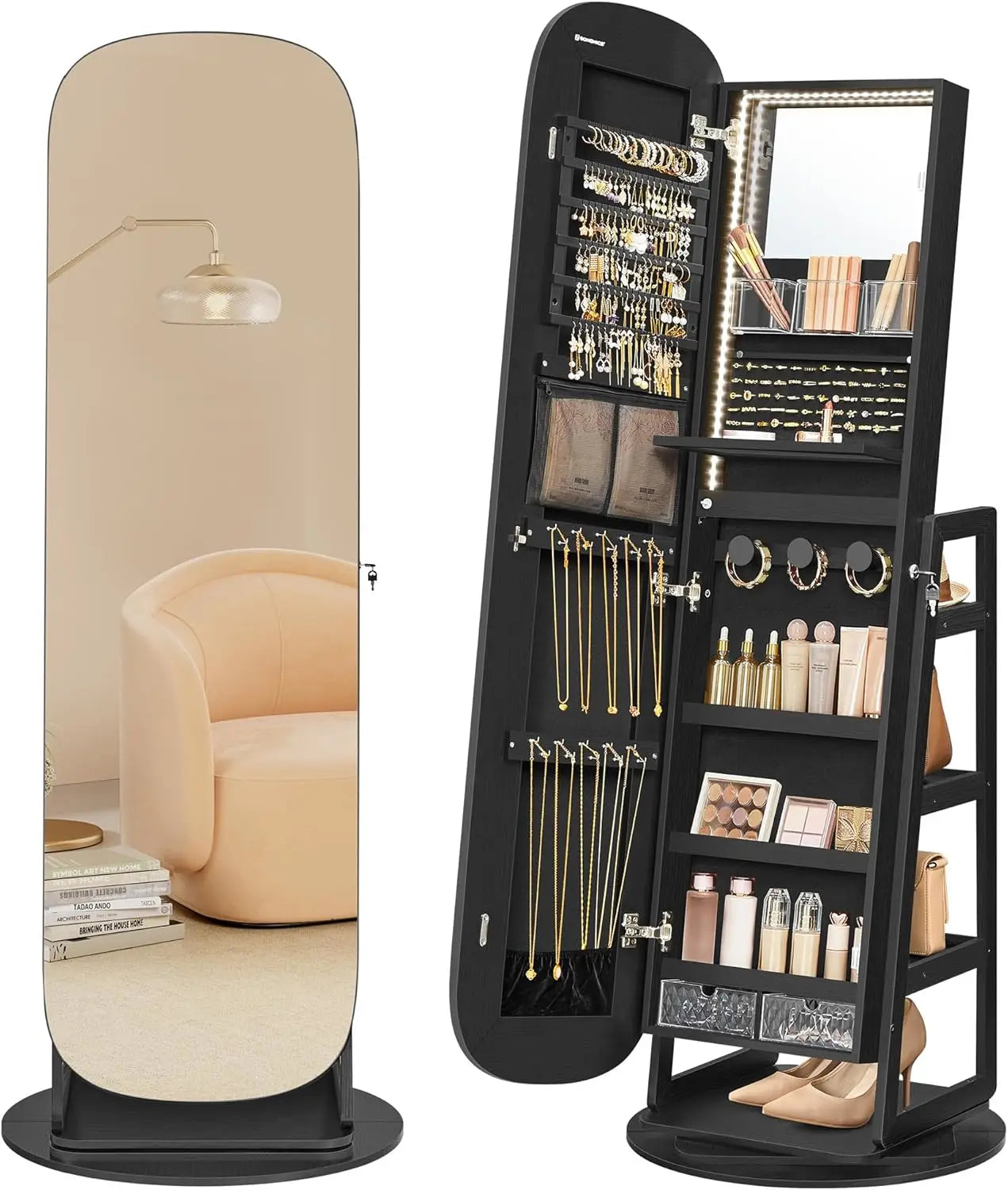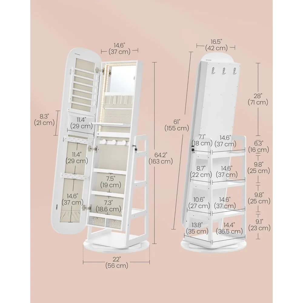- 【FOR REFINED LIVING】This jewelry cabinet comes from our AILEAS collection, where form meets function. This line of full-length mirrors and jewelry cabinets boasts practical mirrors and elegant round edges, enhancing your beauty routine and living space