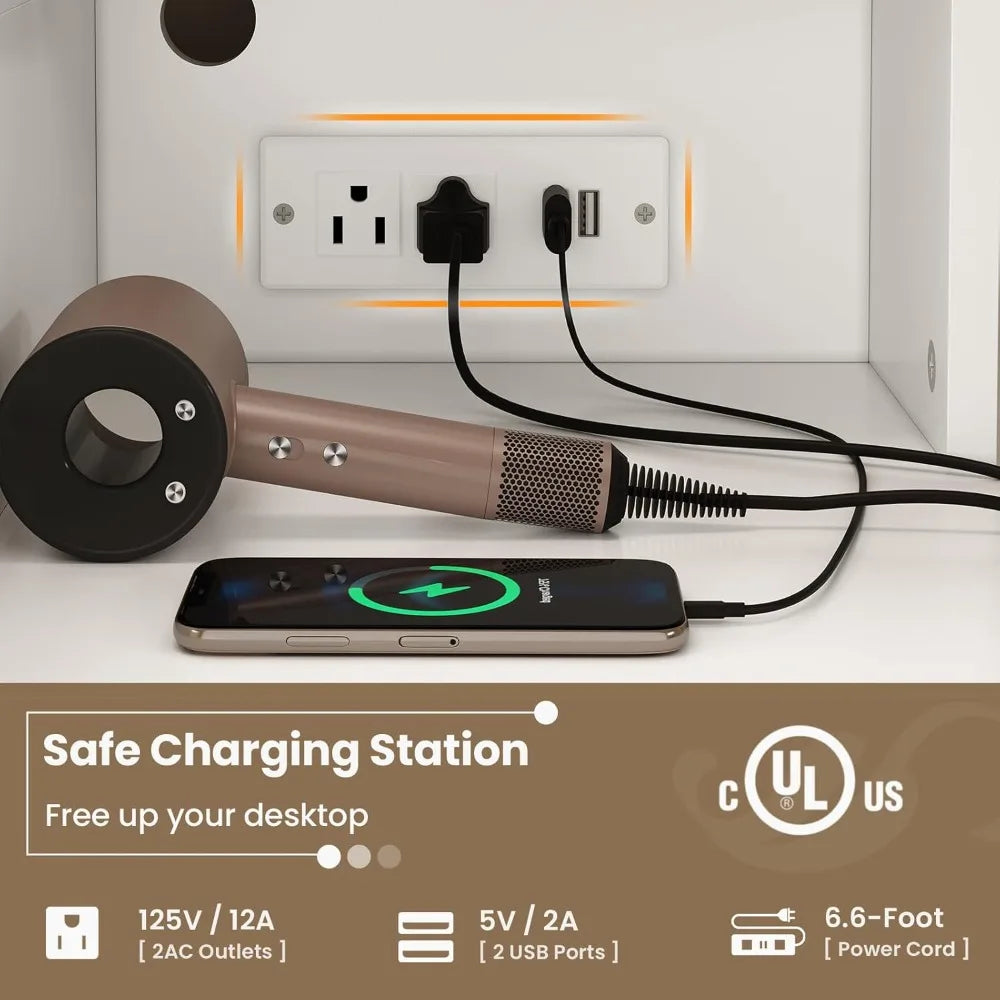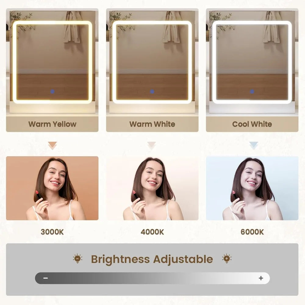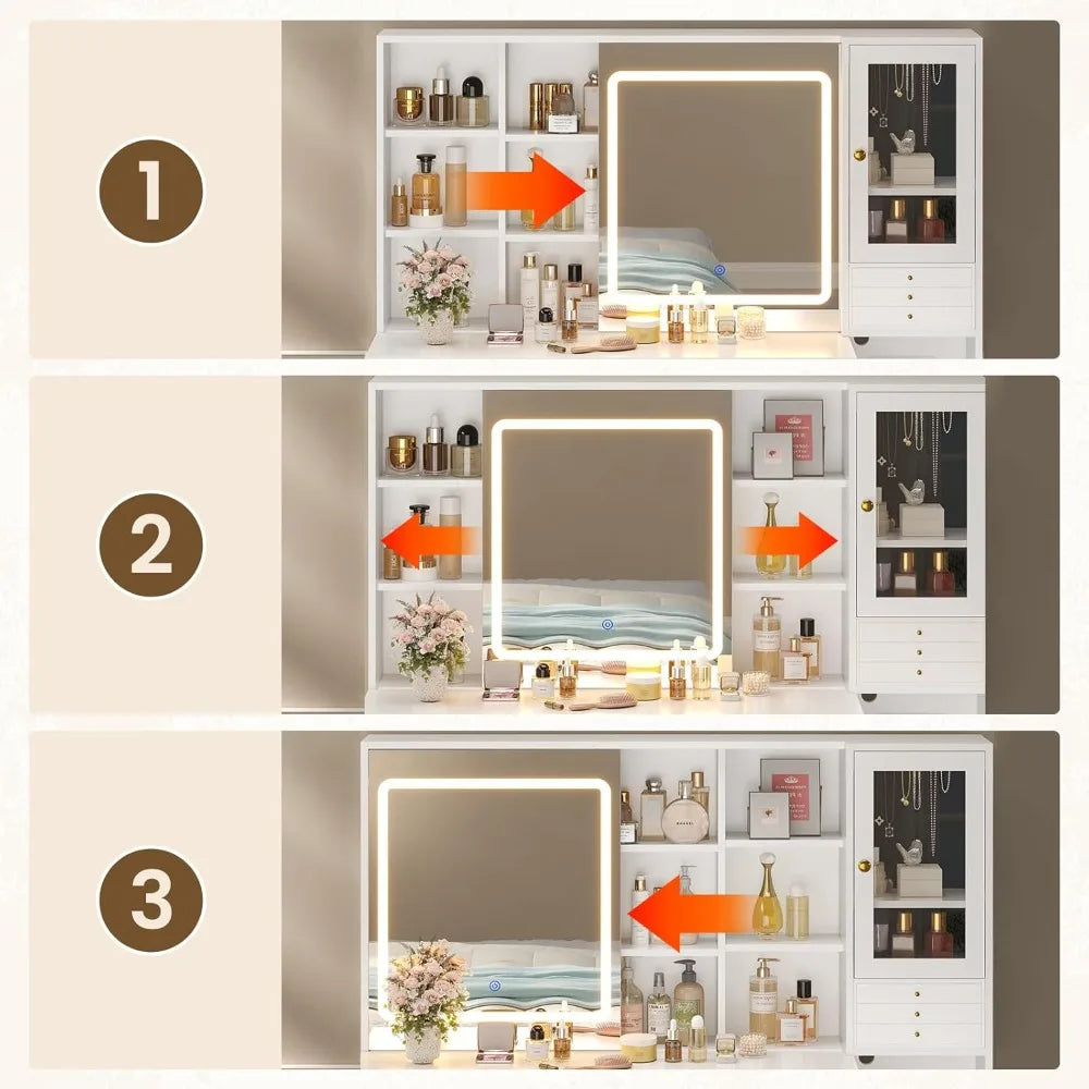 Makeup Vanity Desk with Lights & Sliding Mirror & Power Outlets, Modern Vanity Table with 5 Drawers & Shelves, White Dressing