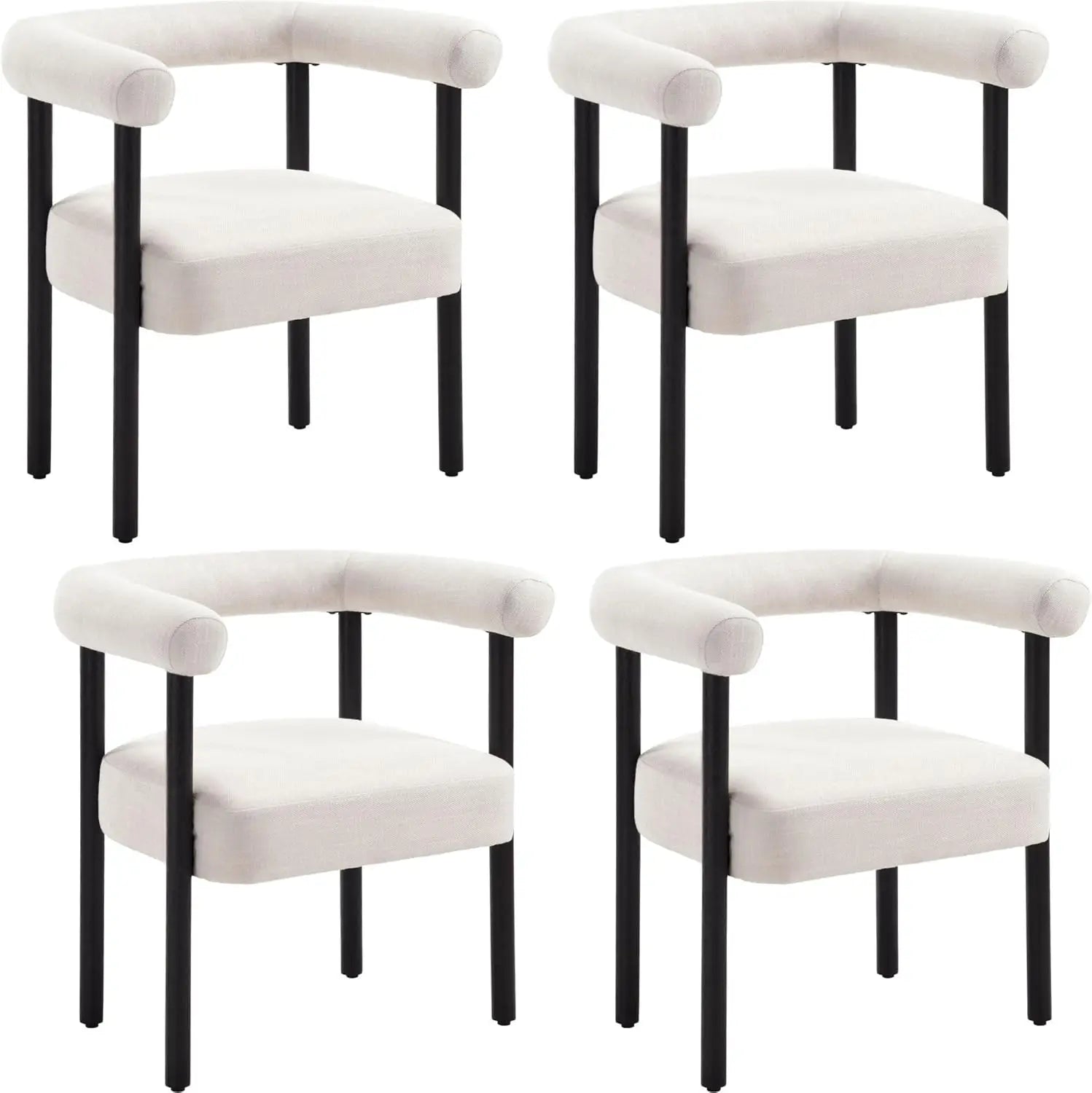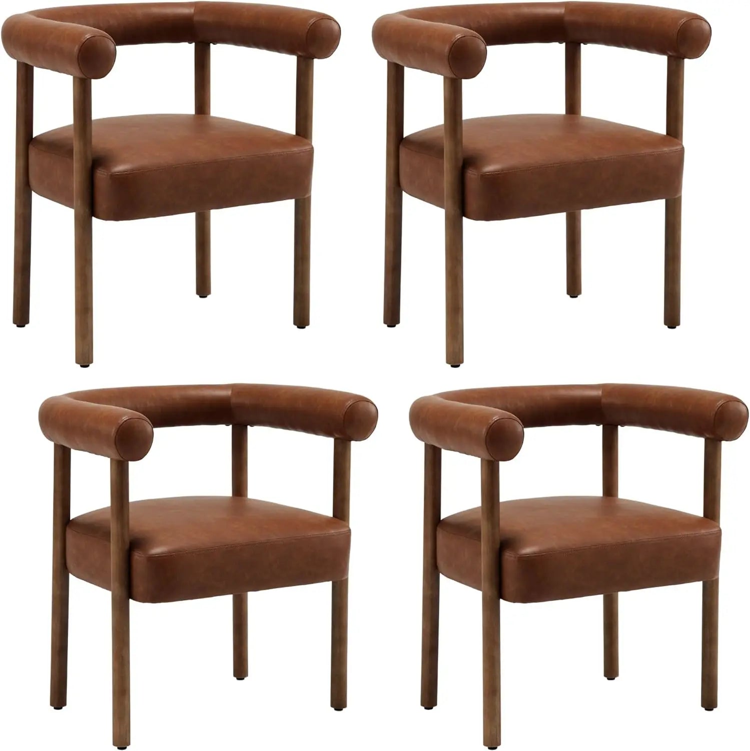 Mid-Century Modern Dining Chairs Set of 4, Armrest Barrel Dining Chairs Side Chairs with Curved Back, Upholstered Wood Armchairs