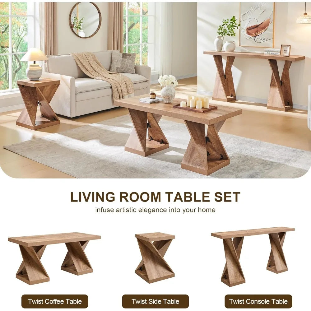 - Innovative Twisted Architectur: The farmhouse coffee table sits comfortably at the intersection of modern lodge and farmhouse aesthetics. The distinctive twisted shape enhances the texture and spatial presence of this exceptional piece. Your warm and welcoming disposition is reflected in the charming geometry elements and Weathered rustic texture finish. Even with its poise, this End table remains practical.
