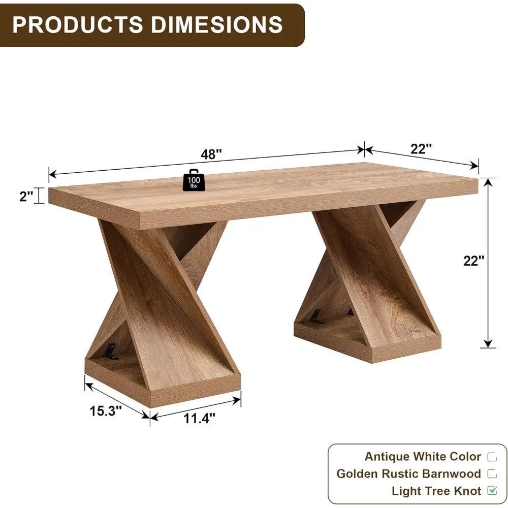 Modern Coffee Table, 48" Twisted Center Table with Wood Thickened Pedestal, Rectangular Rustic Living Room Table, Farmhouse