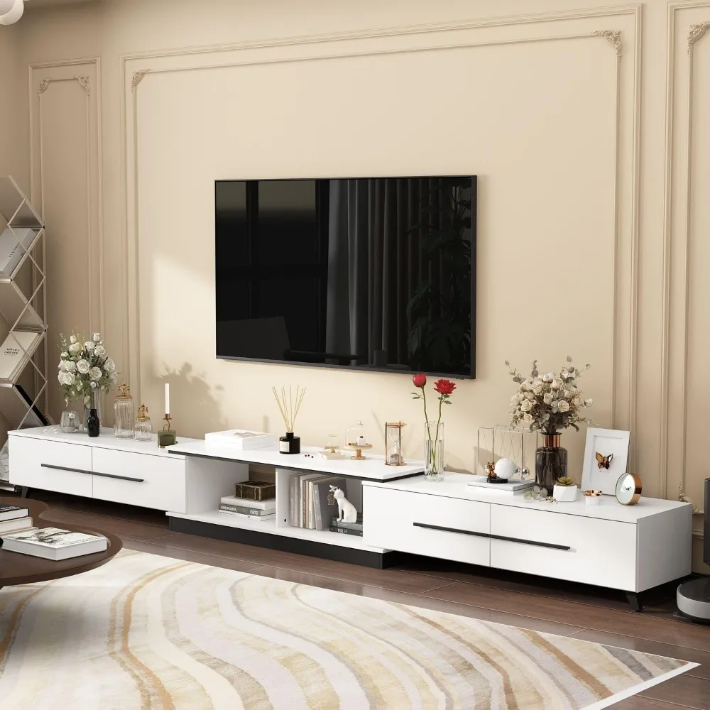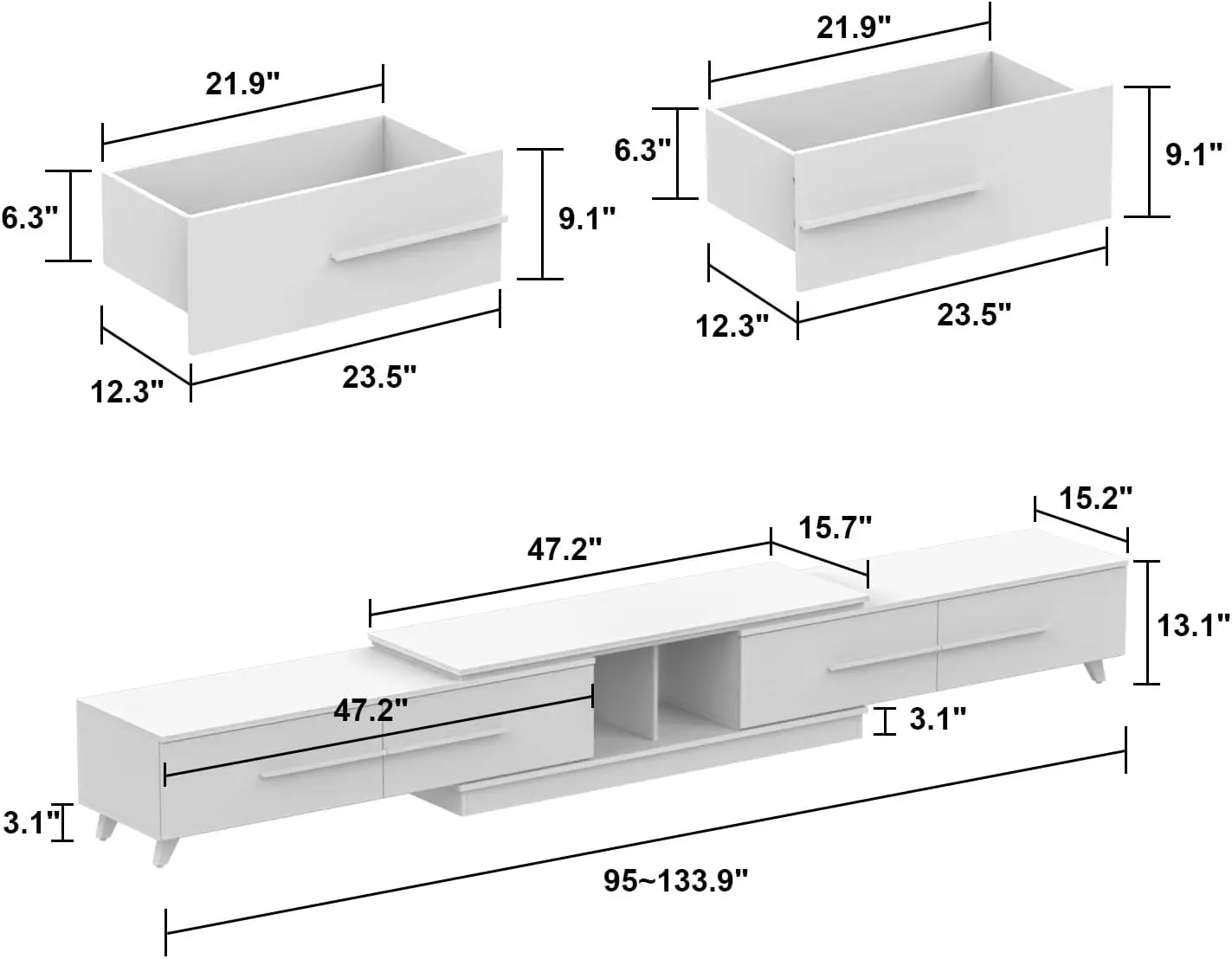 Modern TV Console Extendable Media Console, Adjustable Length, Contemporary Entertainment Center with Drawers and Legs