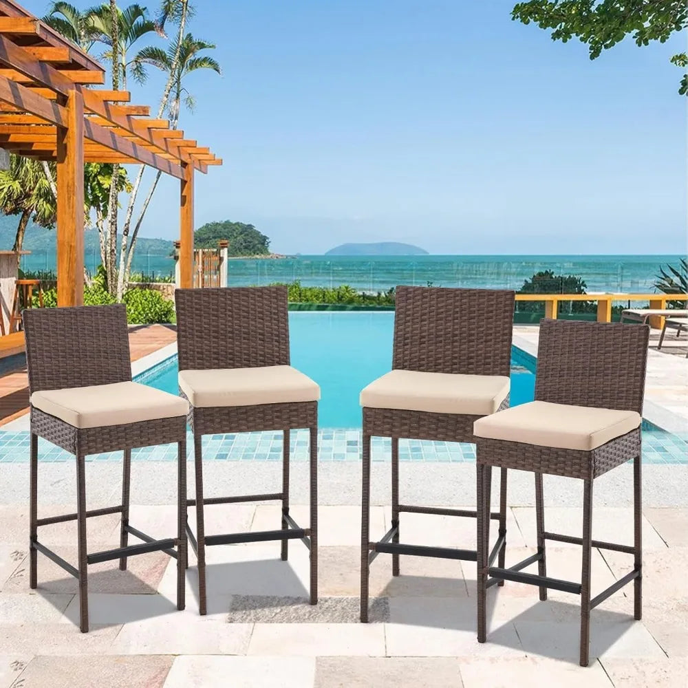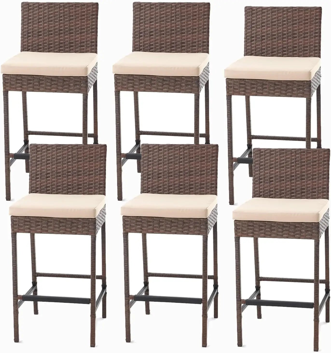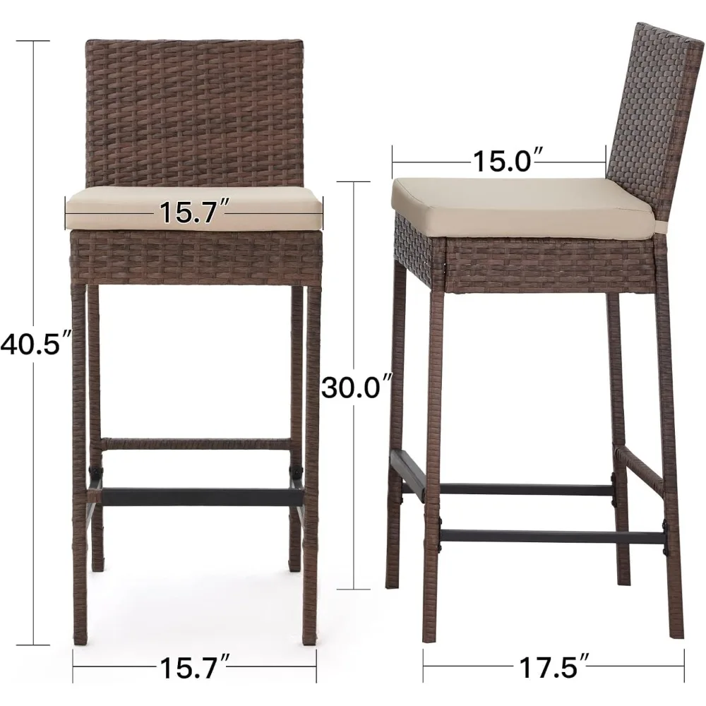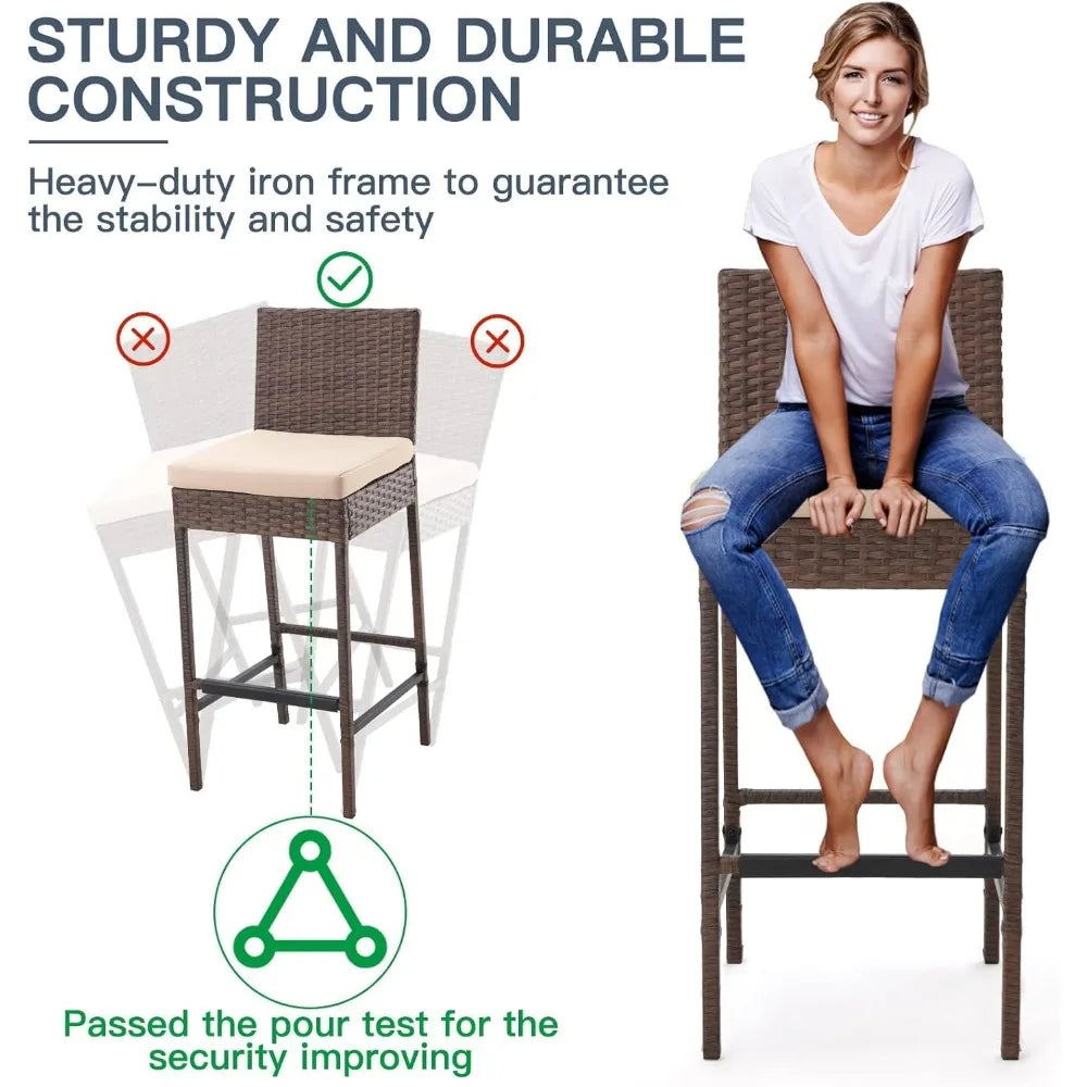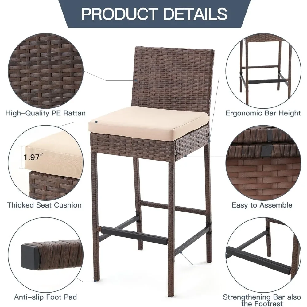 Outdoor Bar Stools, Wicker Woven Patio Stools & Patio Bar Chairs with Seat Cushion and Cozy Footrest, Rattan Furniture