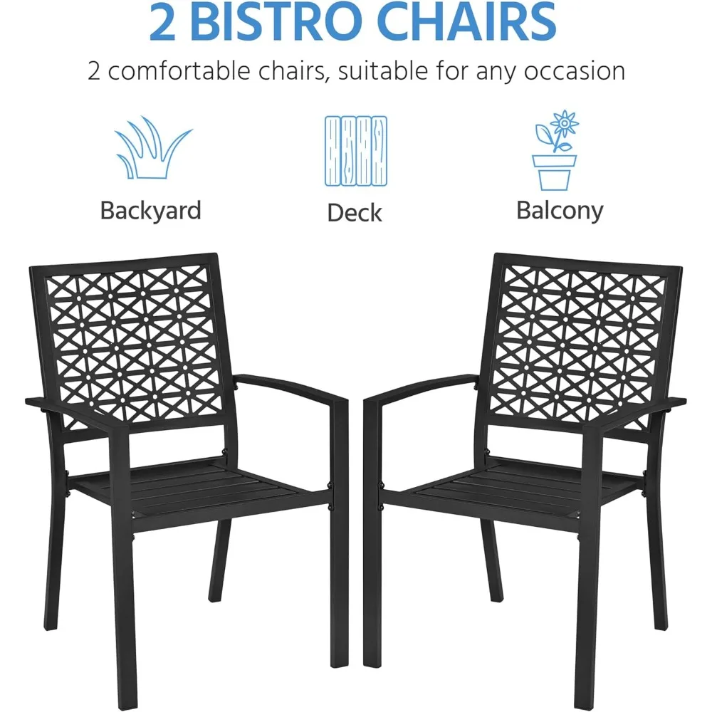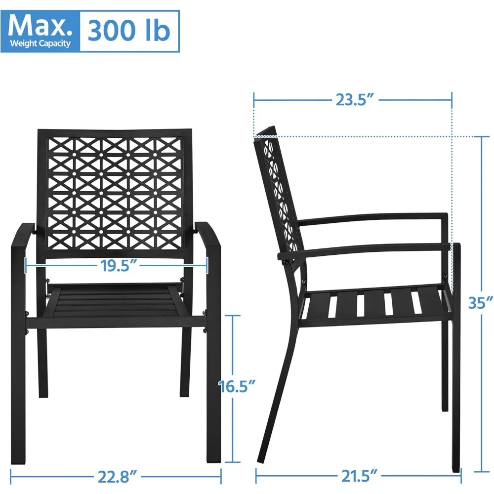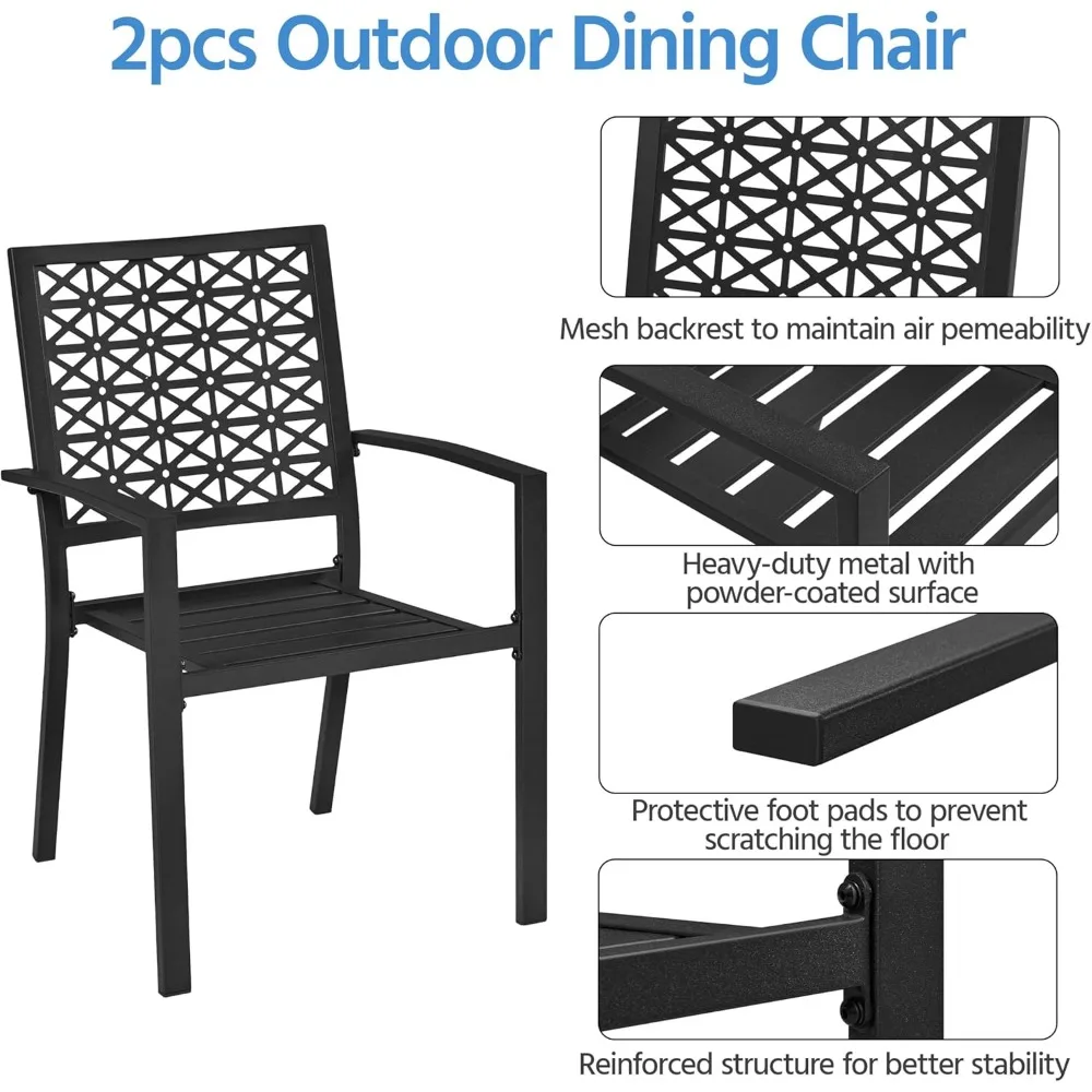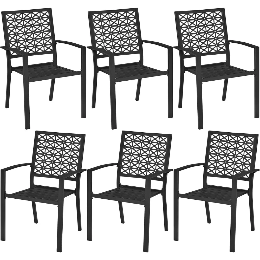 Outdoor Patio Dining Chairs Set of 6 with Armrests and Metal Frame, Heavy-Duty Metal Black Outdoor Chairs Stackable for Garde