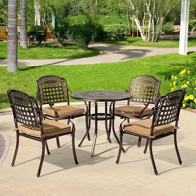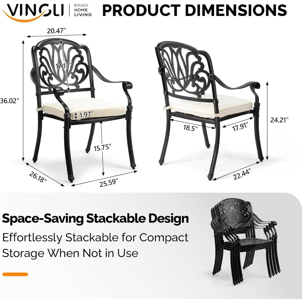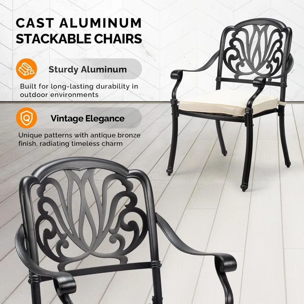 - Durable Cast Aluminum Construction: Crafted with heavy-duty rust-proof cast aluminum, these outdoor patio chairs withstand harsh weather, rain, and UV exposure while resisting corrosion. Perfect for long-lasting use in gardens, poolside, or coastal areas