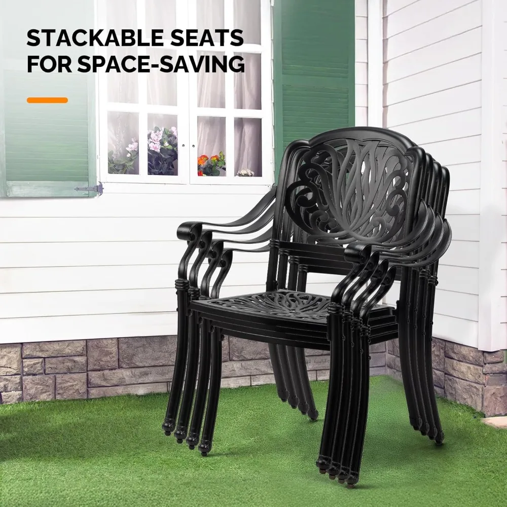 - Space-Saving Stackable: Lightweight yet sturdy, these outdoor dining chairs stack vertically for compact storage. Ideal for small balconies or seasonal use—save space without sacrificing style or functionality