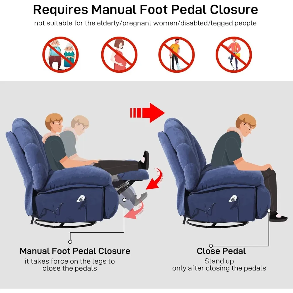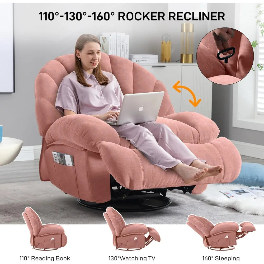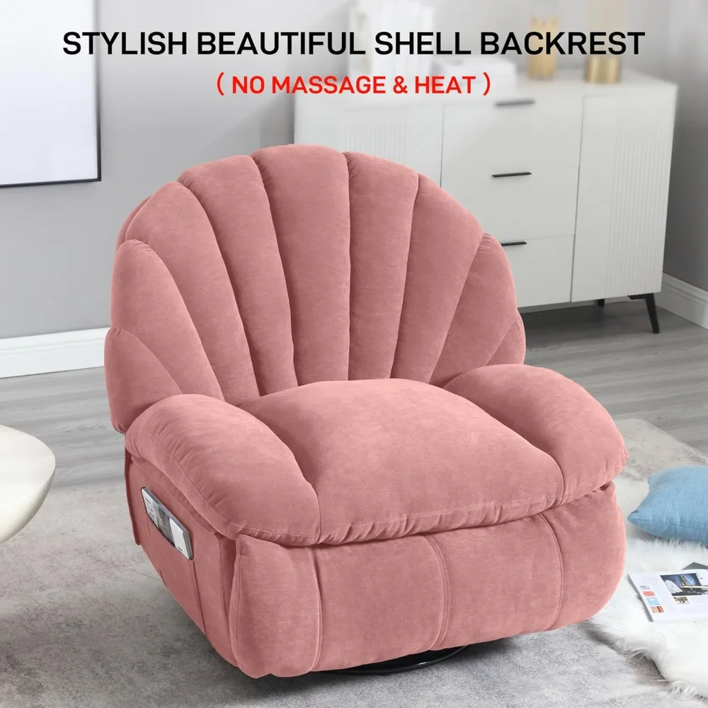 Recliner Chair Rocker Swivel, Comfortable Soft Fabric Shell Shape with Storage 360 Swivel Manual Big Tall Single Reclining Sofa