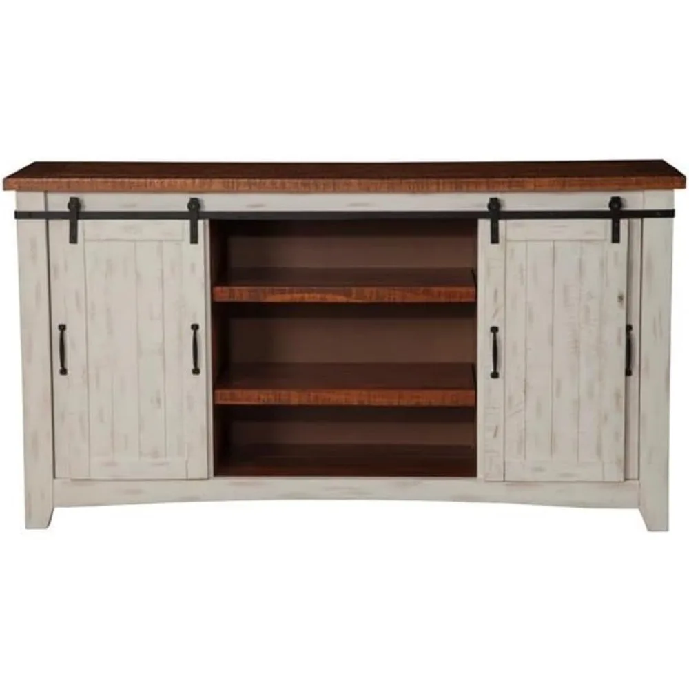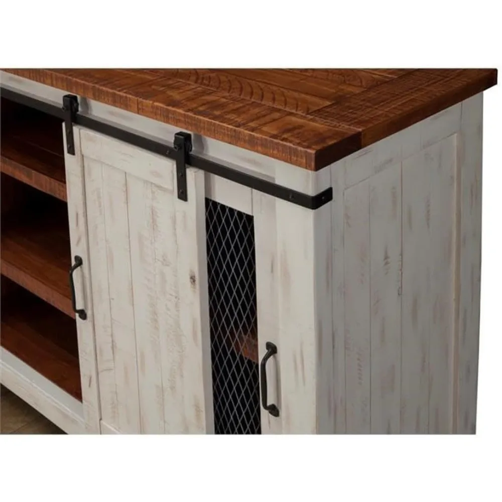 Rustic 65” Solid Wood TV Stand with Storage, White and Aged Distressed Pine