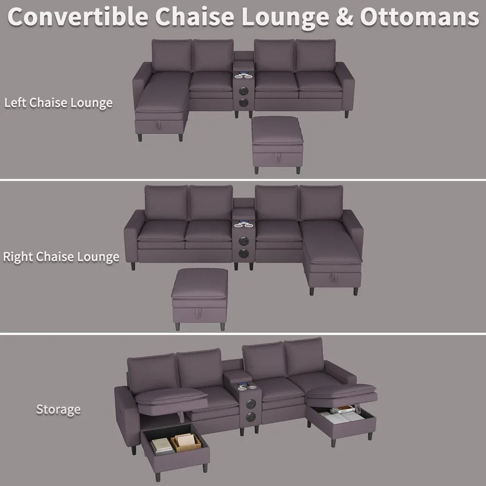 Sectional Couches for Living Room, 4 Seat Sectional Sofa with Smart Module-Bluetooth Speaker/RGB Light/Charging Station