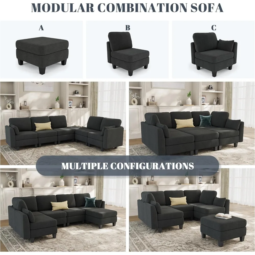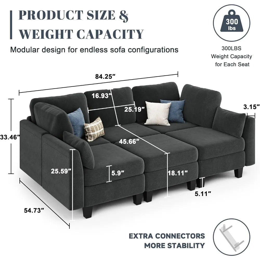Sectional Sleeper Sofa, 6 Seaters Dark Grey Modular Sleeper Sofa Couch, Comfy Sectionals Couches Bed, Convertible Sofas