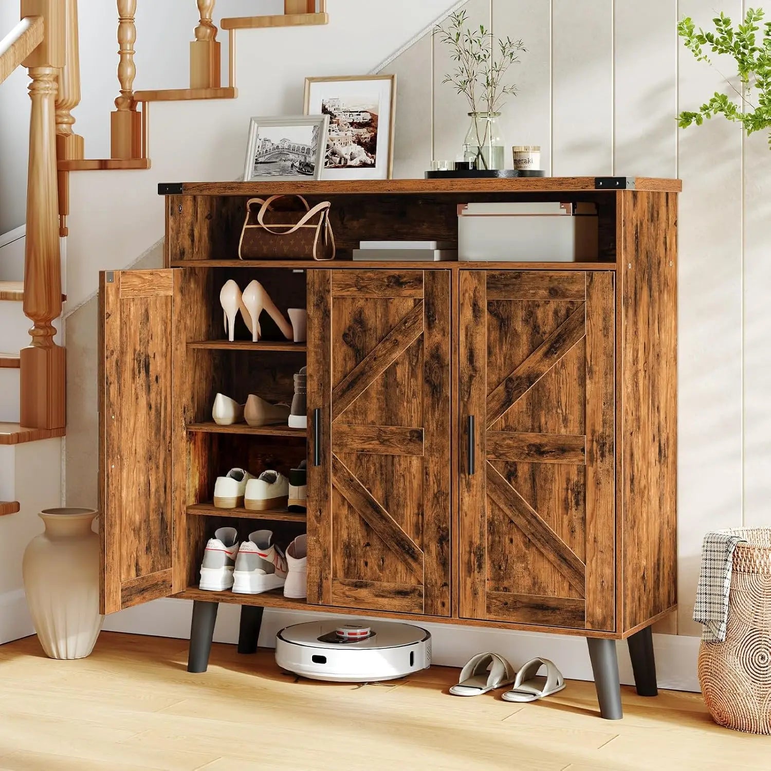 Shoe Cabinet Storage for Entryway, Wooden Shoe Organizer Cabinet With 3 Doors,39.4" Freestanding Shoe Cabinet Storage for Closet