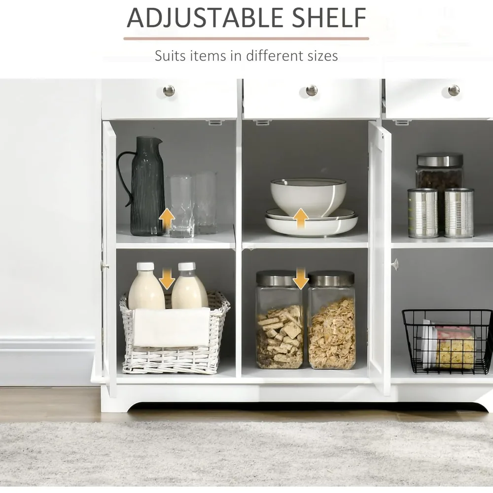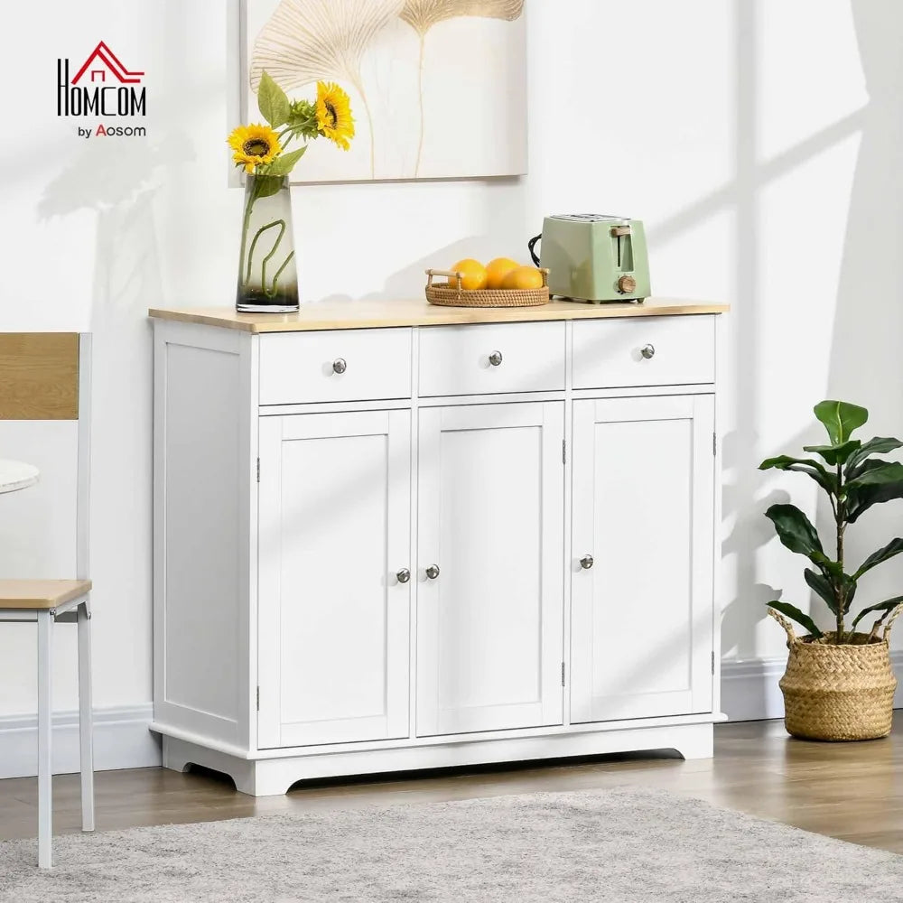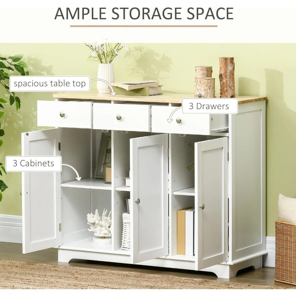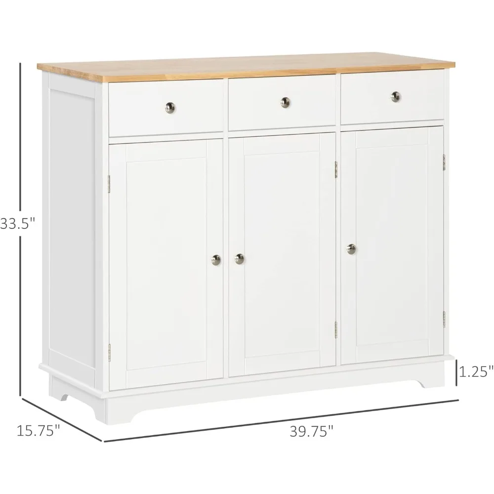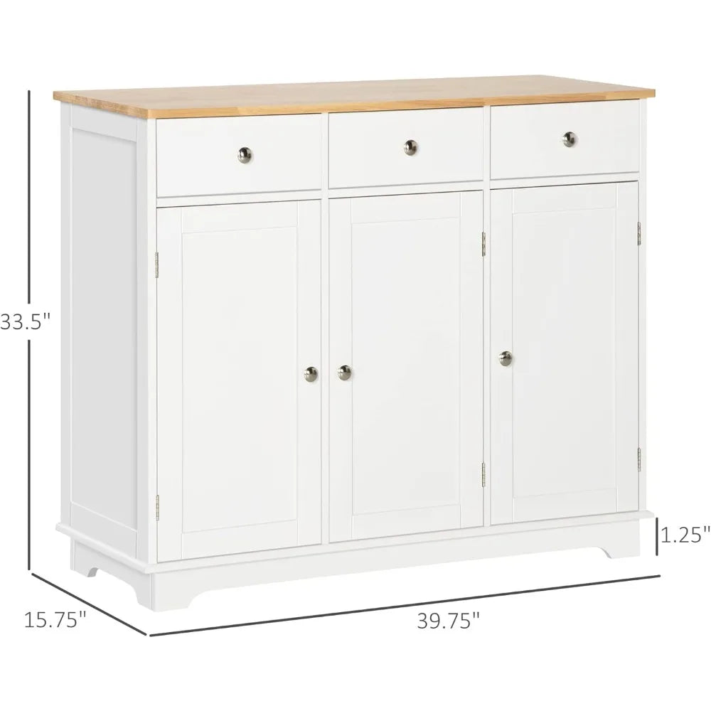 Sideboard with Solid Wood Countertop, Modern Kitchen Storage Cabinet, Coffee Bar Cabinet with 3 Drawers, Doors and Adjustable