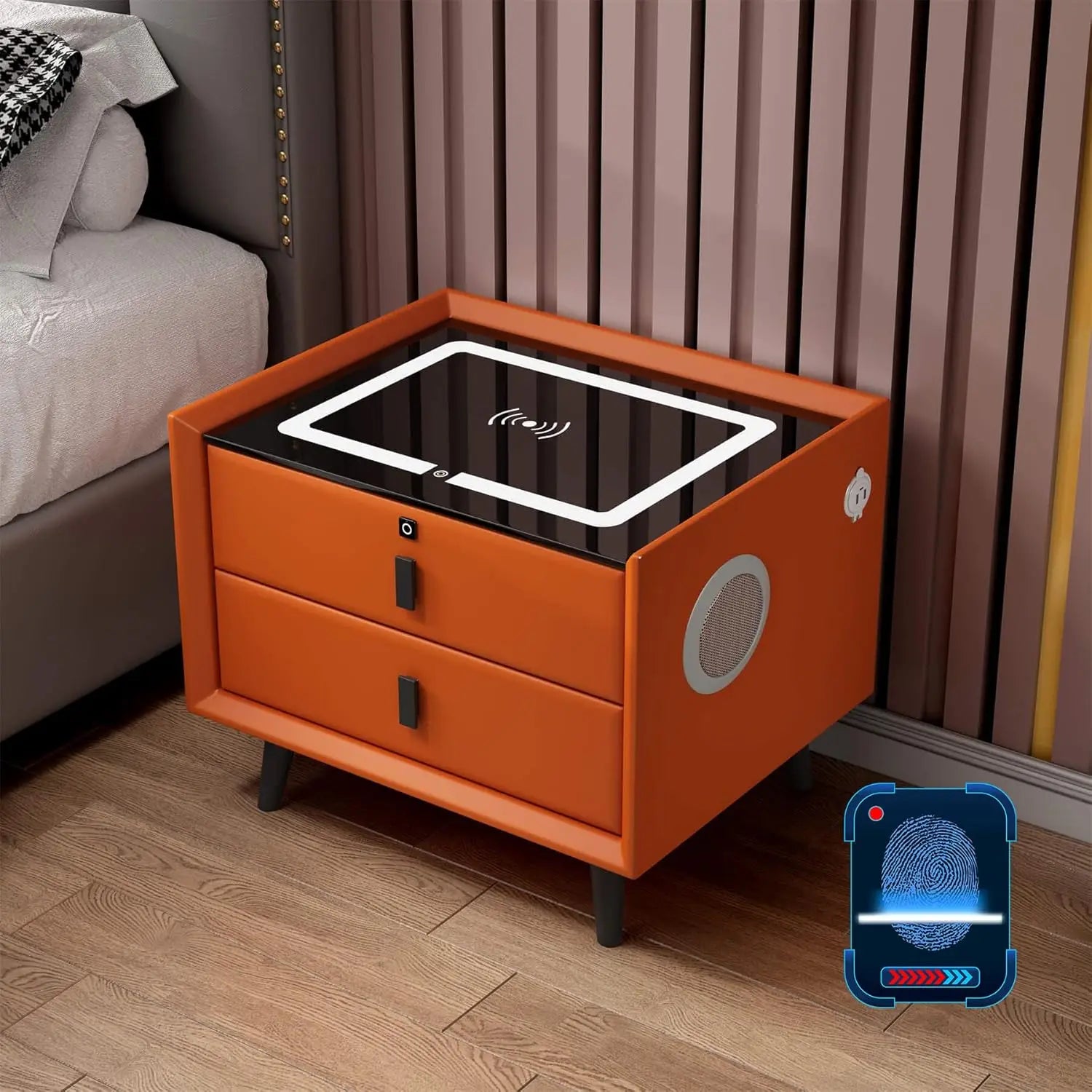 • ▶SMART NIGHTSTAND:The smart nightstands equipped with 3C tempered glass desktop,wear-resistant and scratch-resistant, beautiful and fashionable and easy to clean.PU leather completely wraps the nightstand, the sharp edges are wrapped in leather to reduce the danger and protect your family and children.Sliding drawer and shelf design, provides enough space for you to organize your stuff and gives you a neat space.Need to be self-assemble, all necessary hardware, instructions had been included.