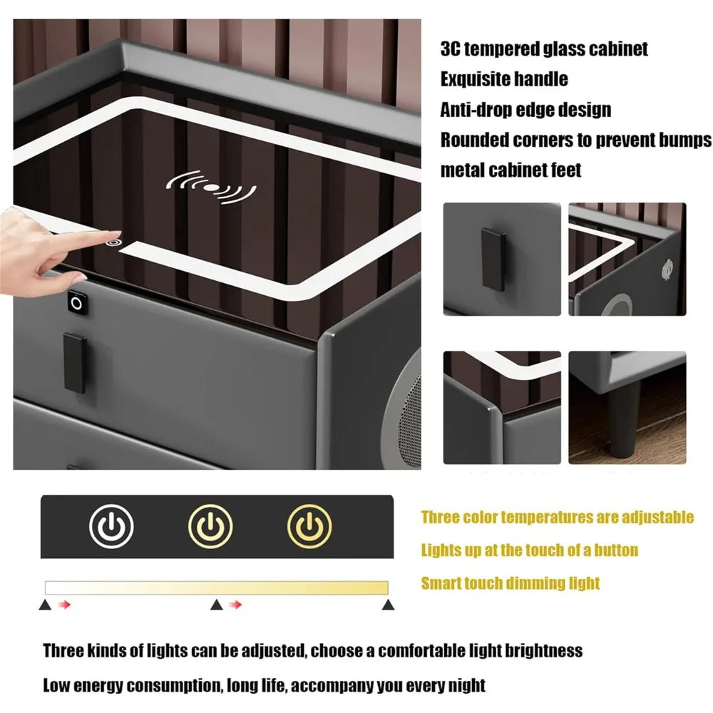 • ▶NIGHTSTAND WITH FINGERPRINT LOCK:private items, rest assured storage. Guard your little secrets, enter multiple fingerprints, and every time you unlock, the self-learning algorithm will continuously improve the pass rate, and the more you use it, the more sensitive it will be. Fingerprint unlocking opens a convenient life!