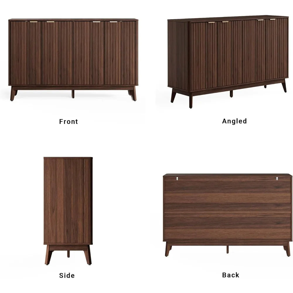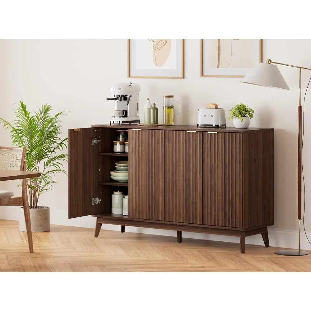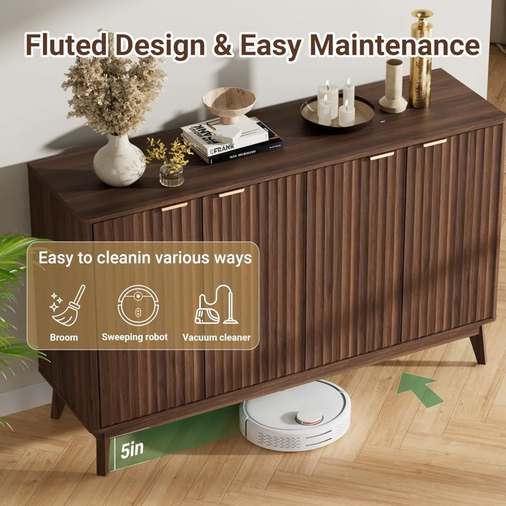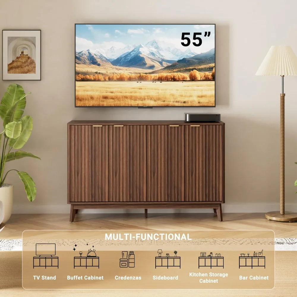 Walnut Fluted Sideboard Buffet Cabinet with Storage 55in Large Wood Credenza Accent Cabinet for Living Room Entryway Dining Room