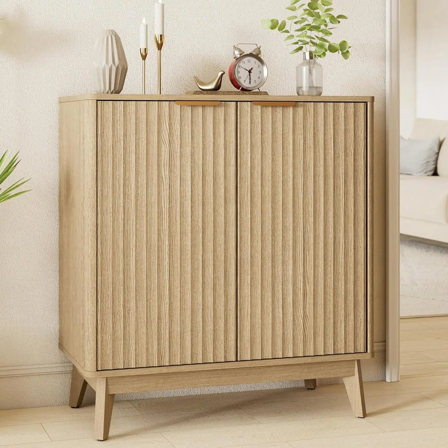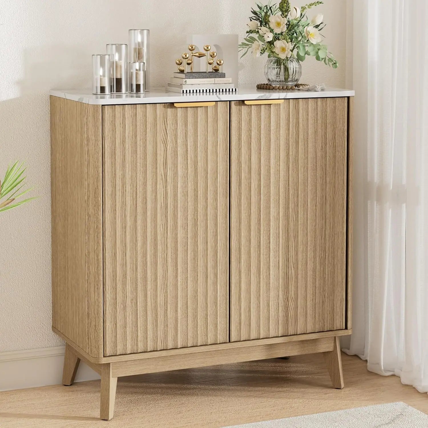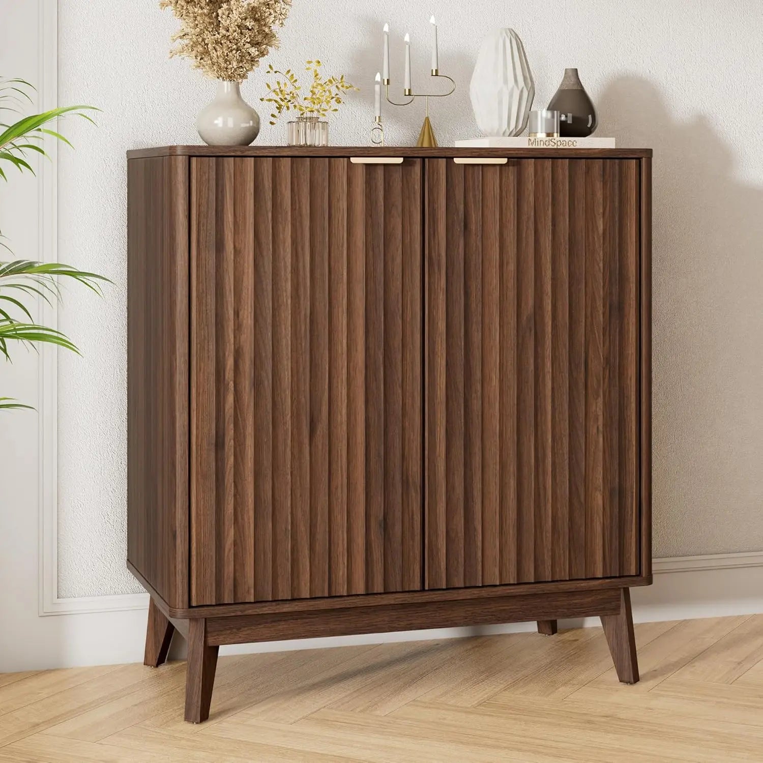 Walnut Fluted Sideboard Buffet Cabinet with Storage 55in Large Wood Credenza Accent Cabinet for Living Room Entryway Dining Room