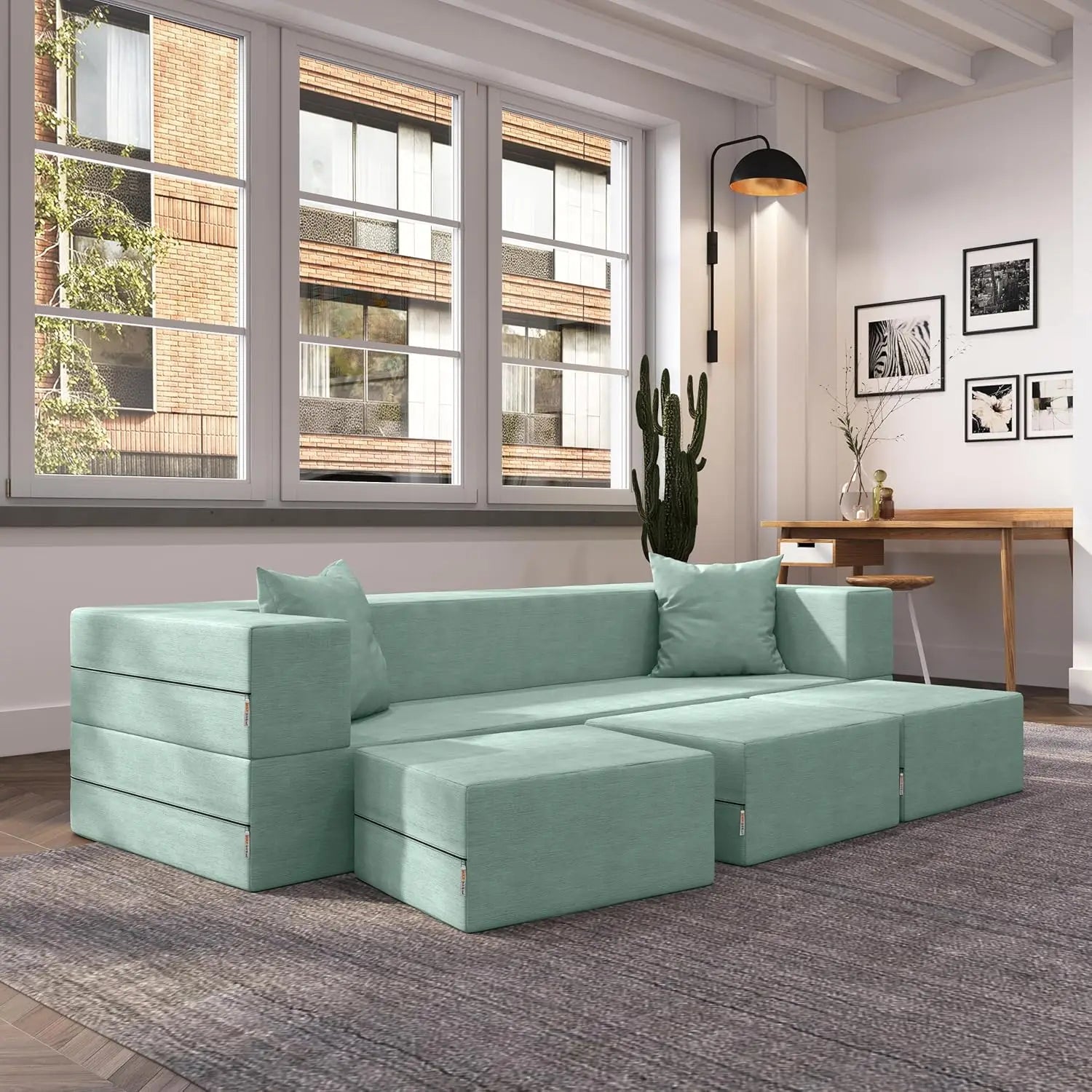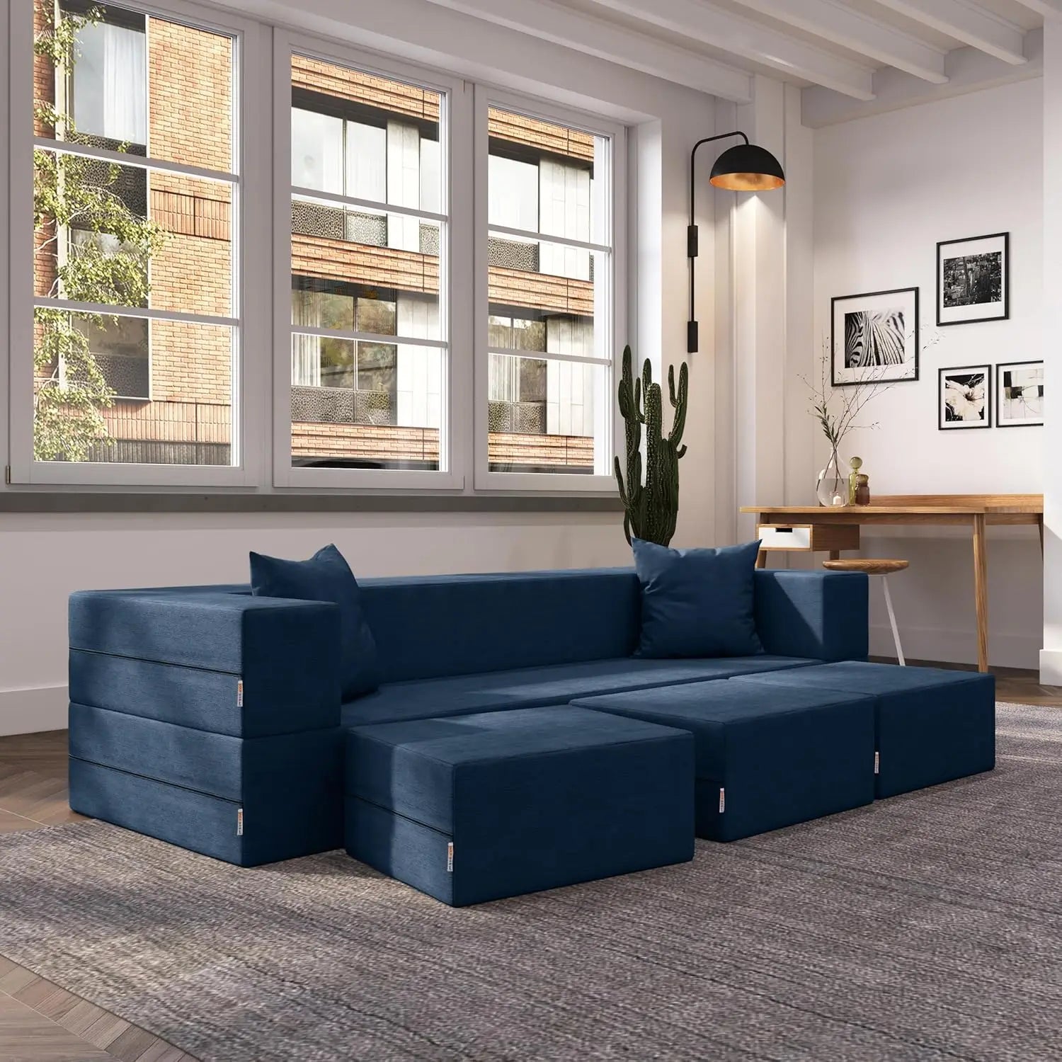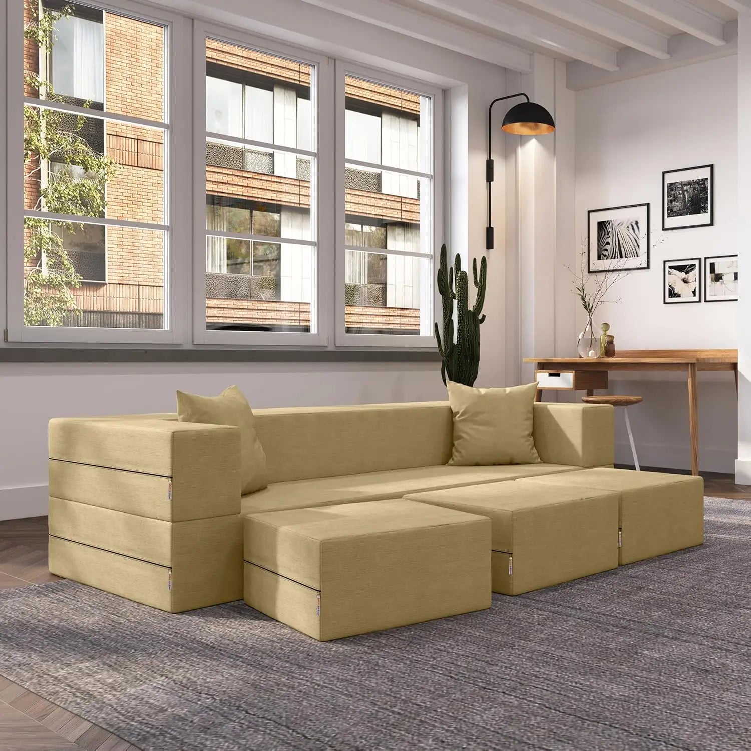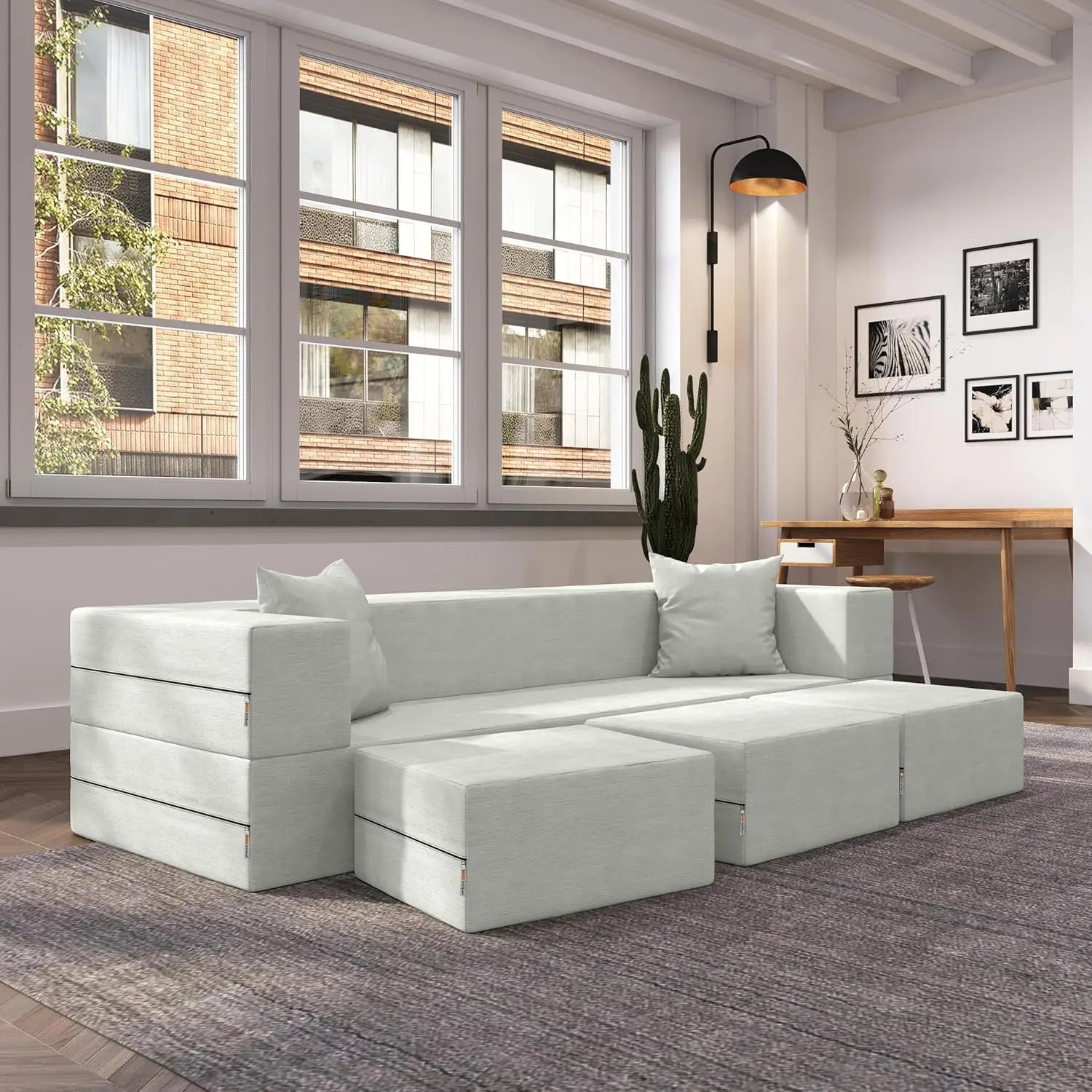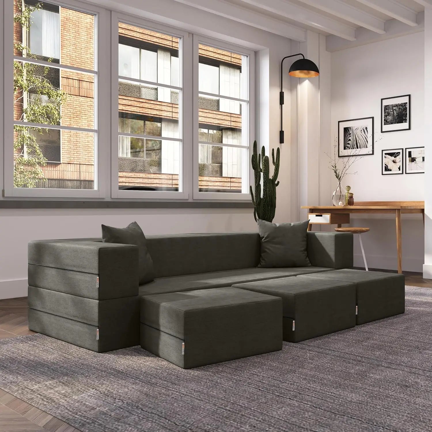 • Totally Customizable Modular Sofa – Contemporary and modular sleeper sofa with three matching ottomans that completes your casual living space