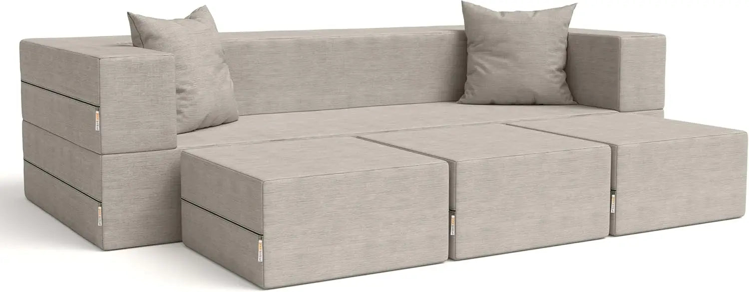 Zipline Convertible Sleeper Sofa & Three Ottomans/California King-Size Bed, Textured Microvelvet